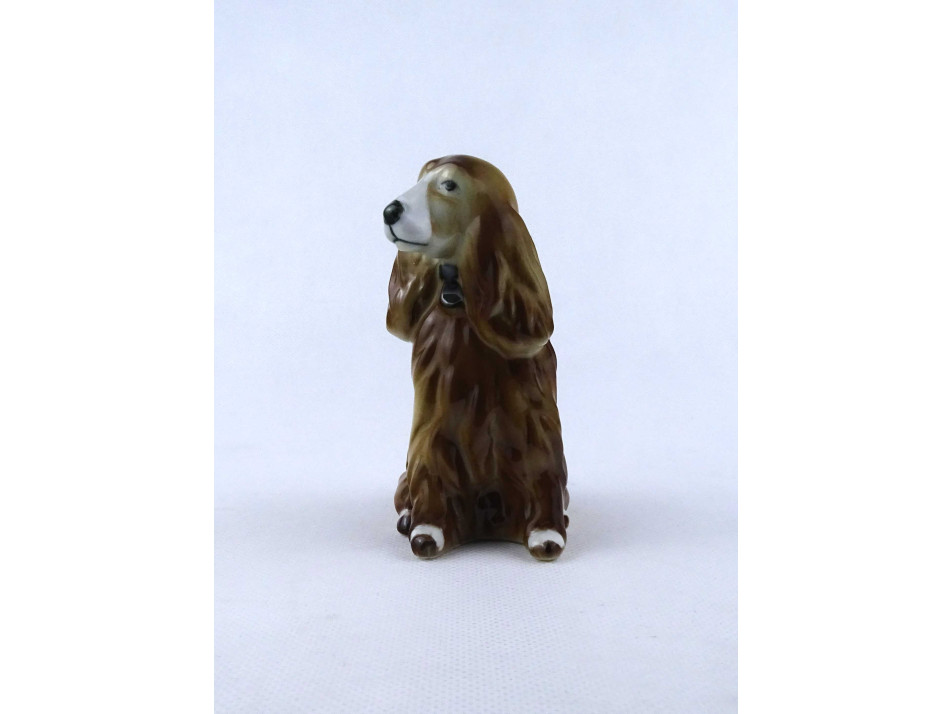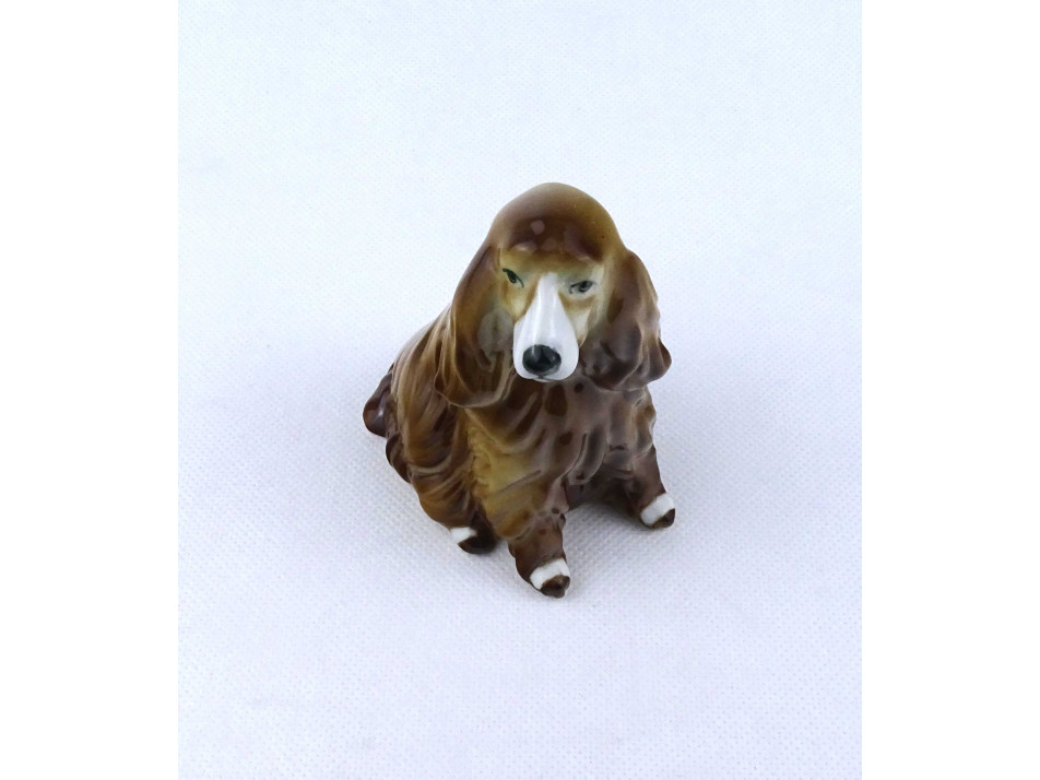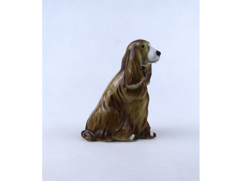 Régi, hibátlan állapotú, kézi festésű Zsolnay porcelán spániel figura.