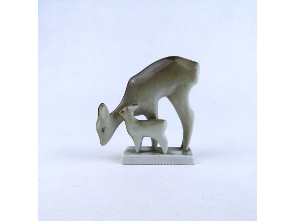 Régi Zsolnay porcelán őzike páros 8.5 cm