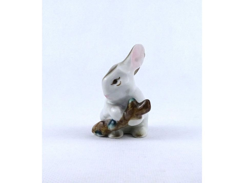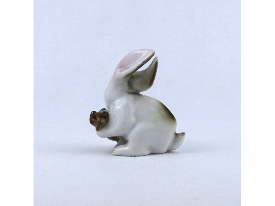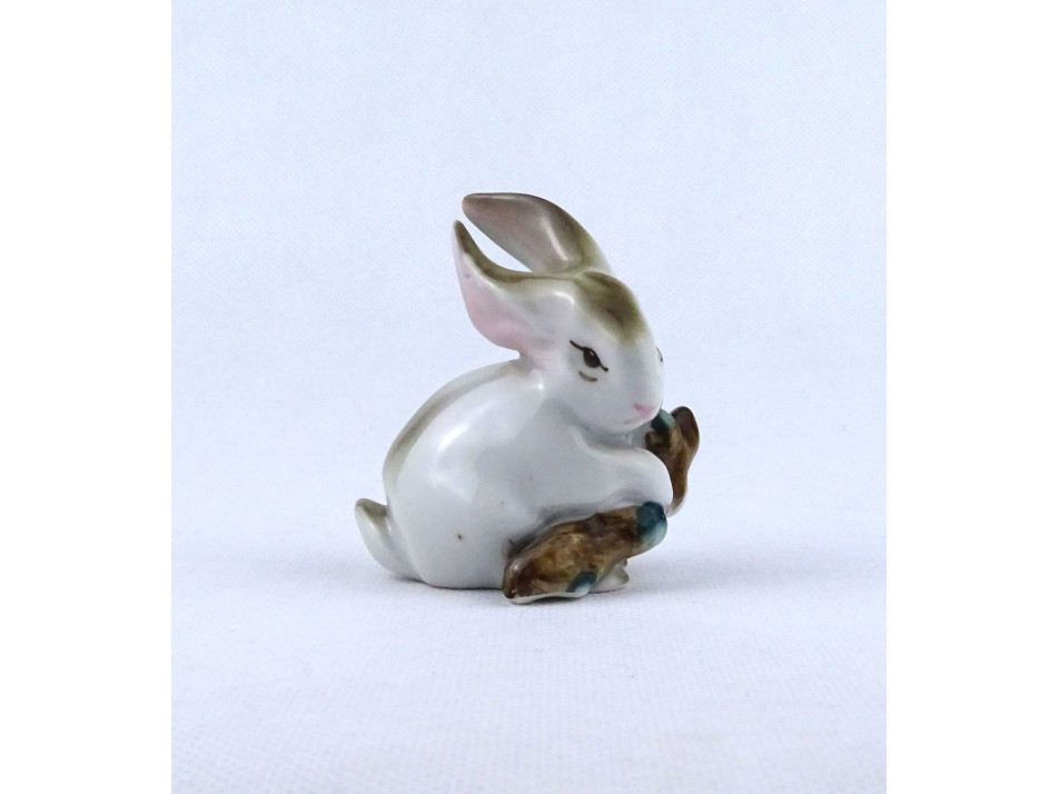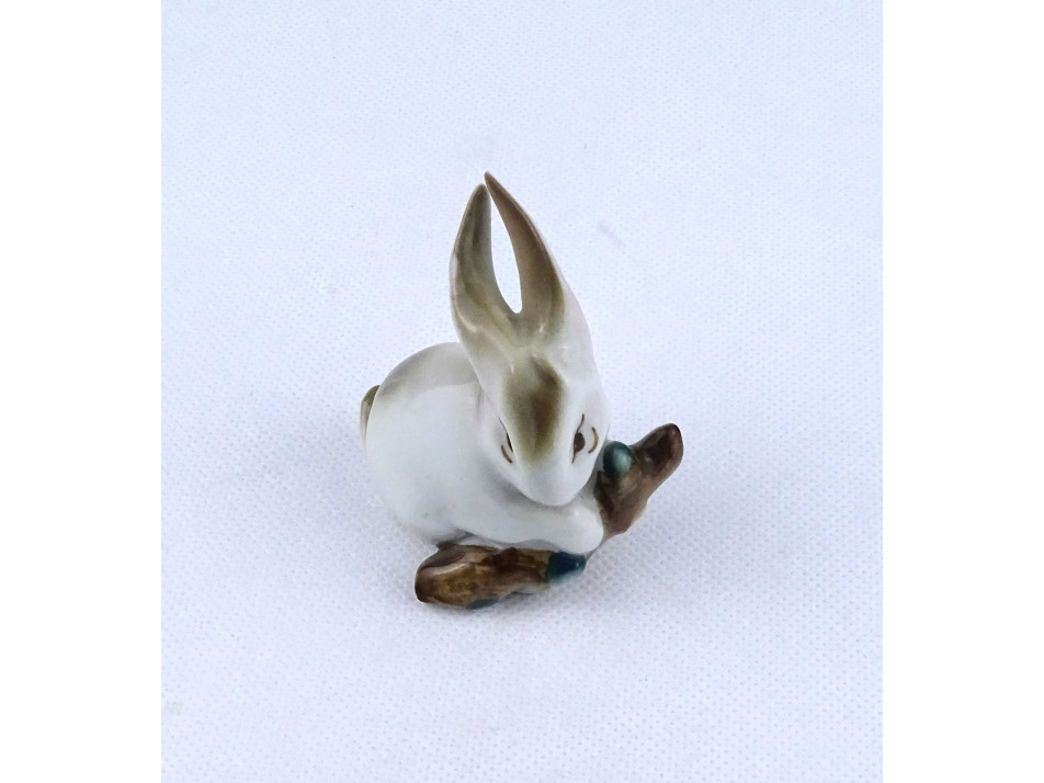 Rügyet rágcsáló nyúl nyuszi Zsolnay porcelán figura