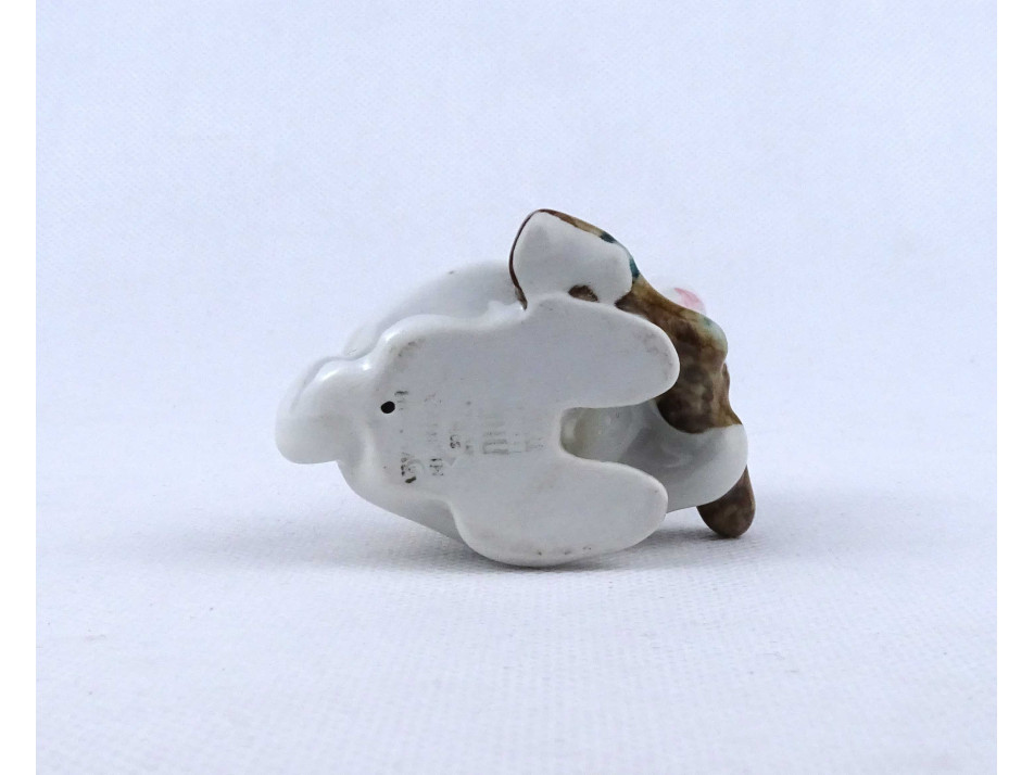 Hibátlan állapotú, kézi festéssel díszített, rügyet rágó Zsolnay porcelán nyúl, nyuszi.