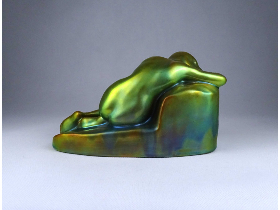 Régi eozin leboruló női akt Zsolnay porcelán szobor