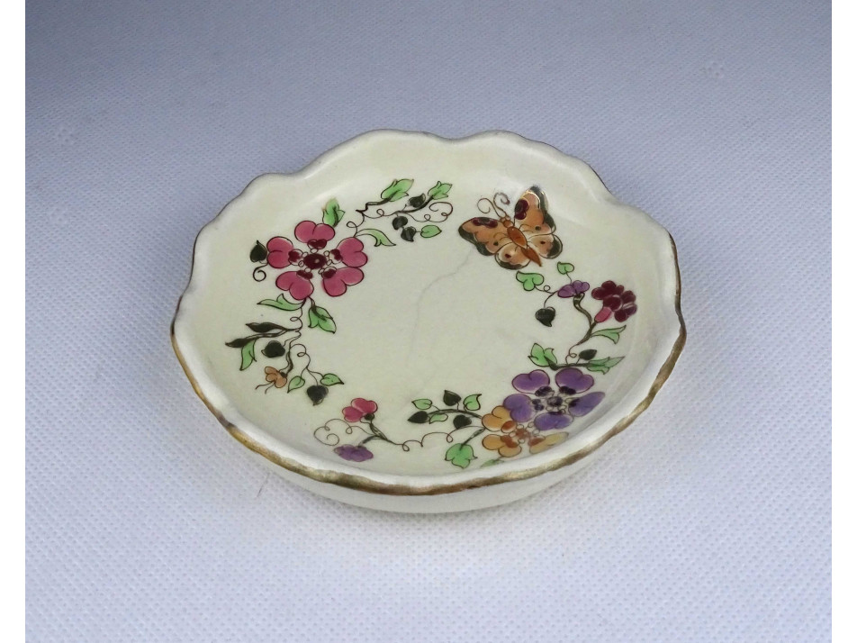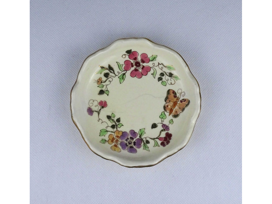 Pillangós Zsolnay vajszínű porcelán tálka hamutál 12.5 cm