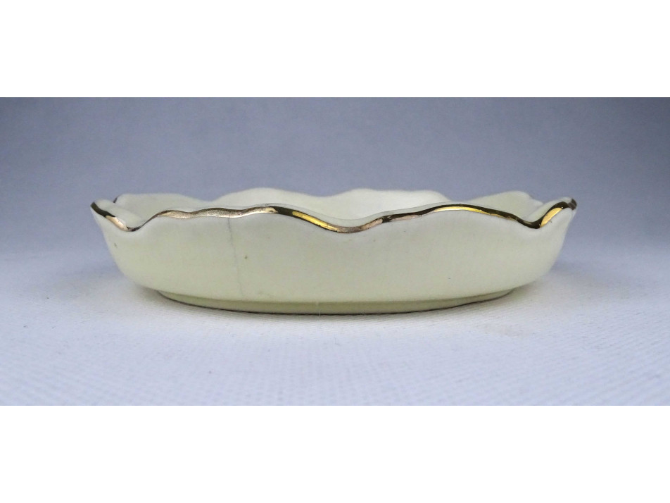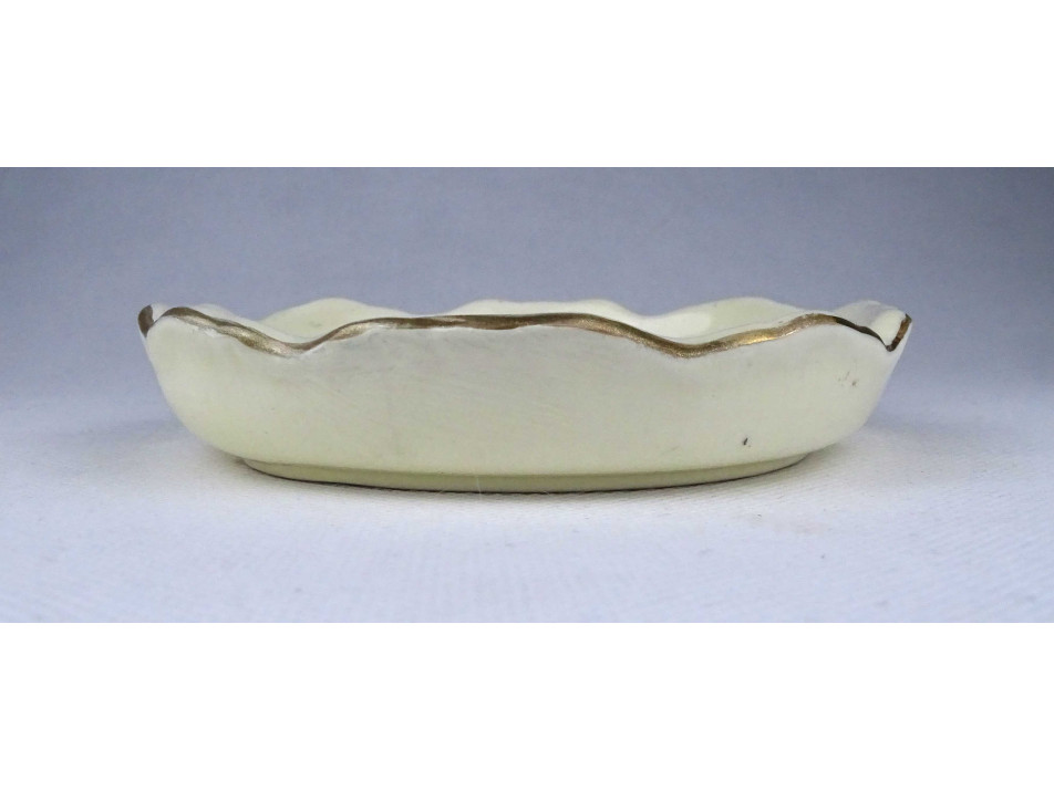 Szép állapotú, gazdagon aranyozott virágmintákkal és pillangóval díszített hamutál, hamus. A hamutál pereme restaurátor által szakszerűen javított.