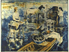 Iparművészeti samott falidísz BE jelzéssel: Török és szamara 36.5 x 16 cm