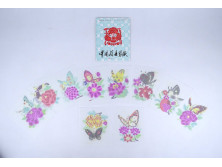 Régi kínai merített papírra festett pillangós virágos akvarell kép csomag 10 darab