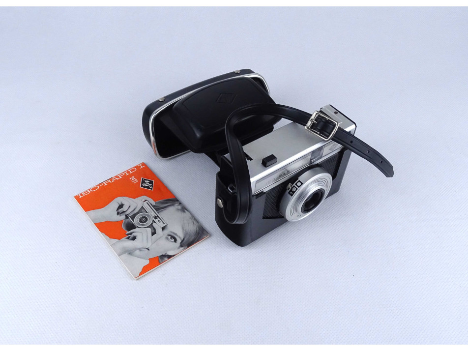 Retro, hibátlan, újszerű állapotú, régi analóg Agfa ISO - RAPID I fényképezőgép műanyag hordtáskában. Eredeti németnyelvű kezelési útmutatóval.
