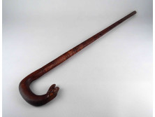 Régi foxi fejet ábrázoló faragott sétapálca kutyafej forma