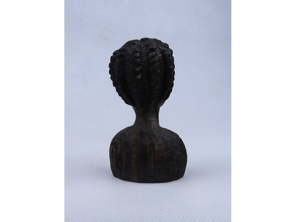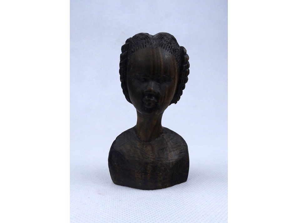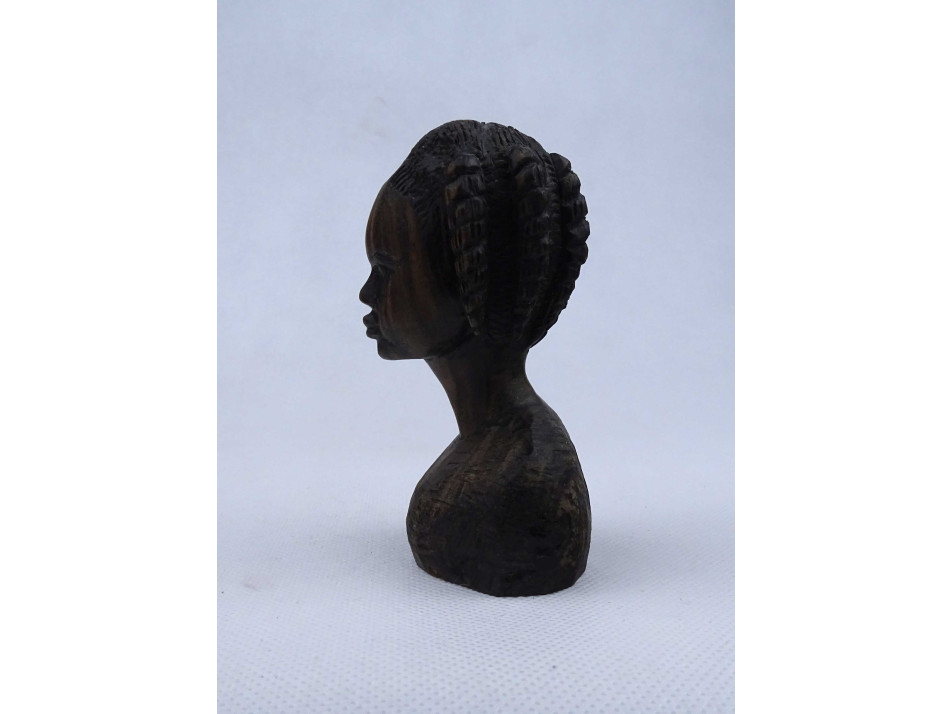 Afrikai egzotikus keményfa fafaragás fiatal női mellszobor 11 cm