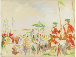 Lilaruhás nő gobelin aranyozott keretben 43 x 36 cm