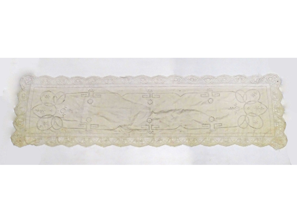 Régi, nagyméretű, csipke terítő 160 x 48 cm