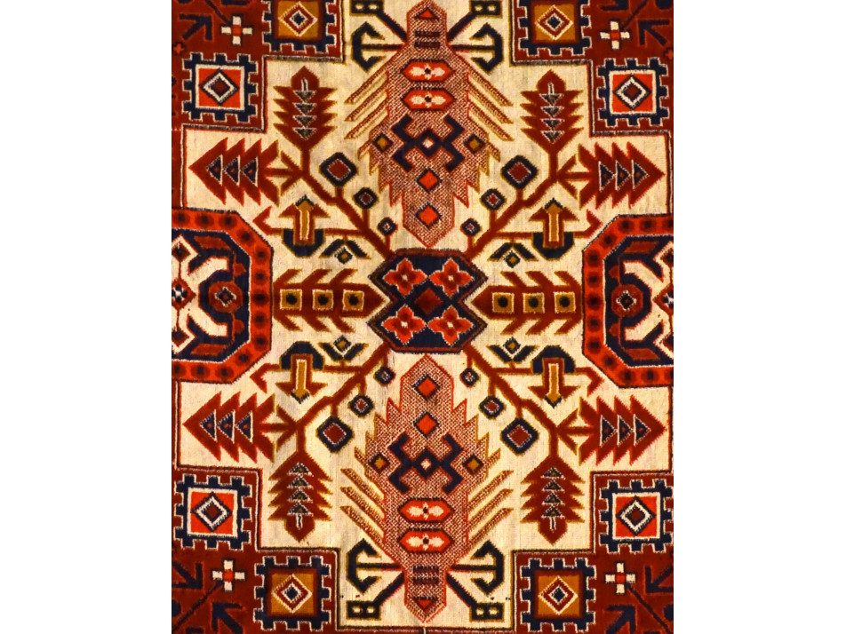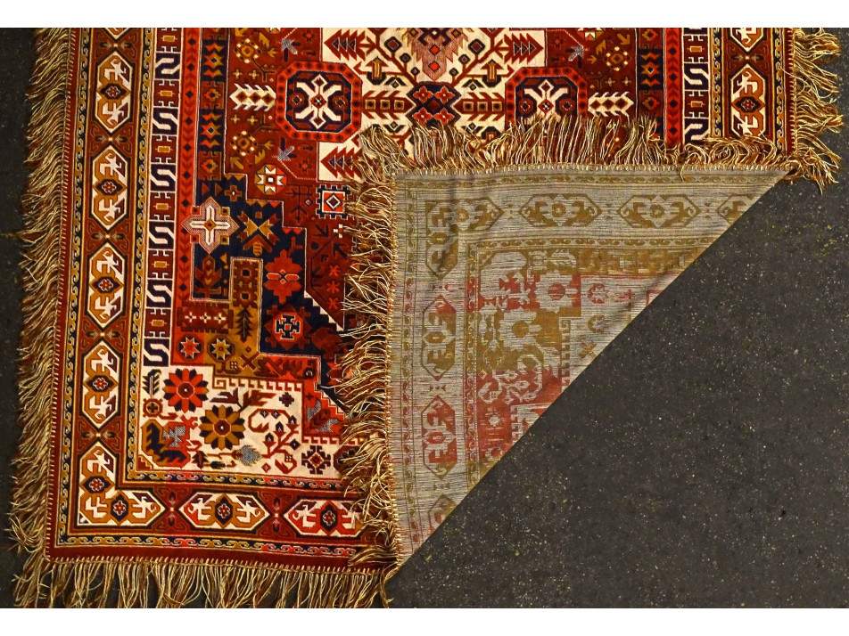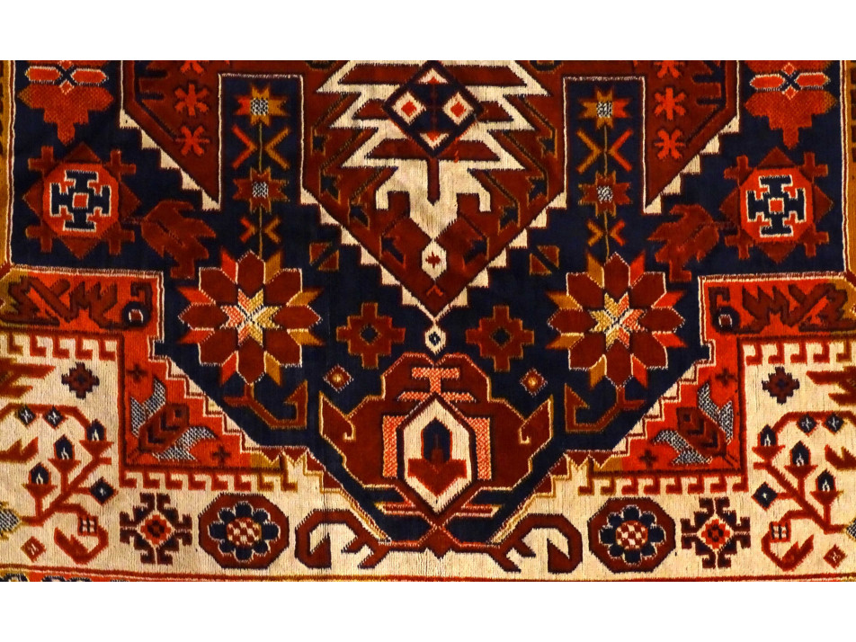 Gyönyörű, szép állapotú selyem mokett, goblein-szerű, szövésű vékony anyag. Finom anyagú ágytakaró, rendkívül részletes, részletgazdag mintával, élénk színekkel szinte használatlan állapotban. Négy oldalán körben rojtozott. Az egyik rövidebb oldalán a rojtok tövében varrással javított.