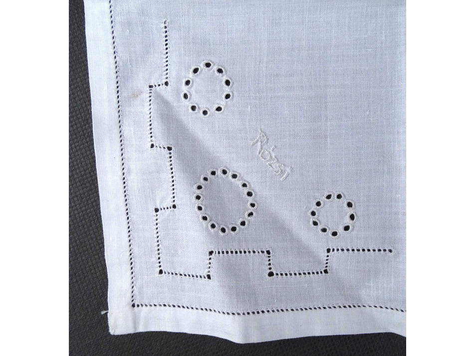 Régi hímzett RÓZSI feliratos lenvászon zsebkendő csomag 8 db