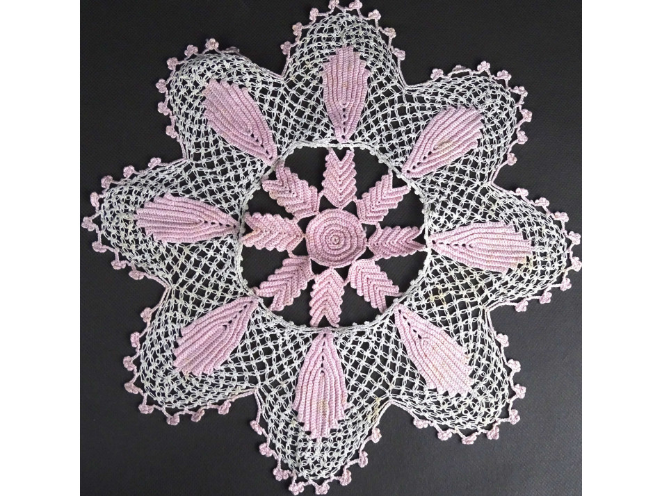 - köralakú rózsaszín horgolt csipketerítő 30 cm