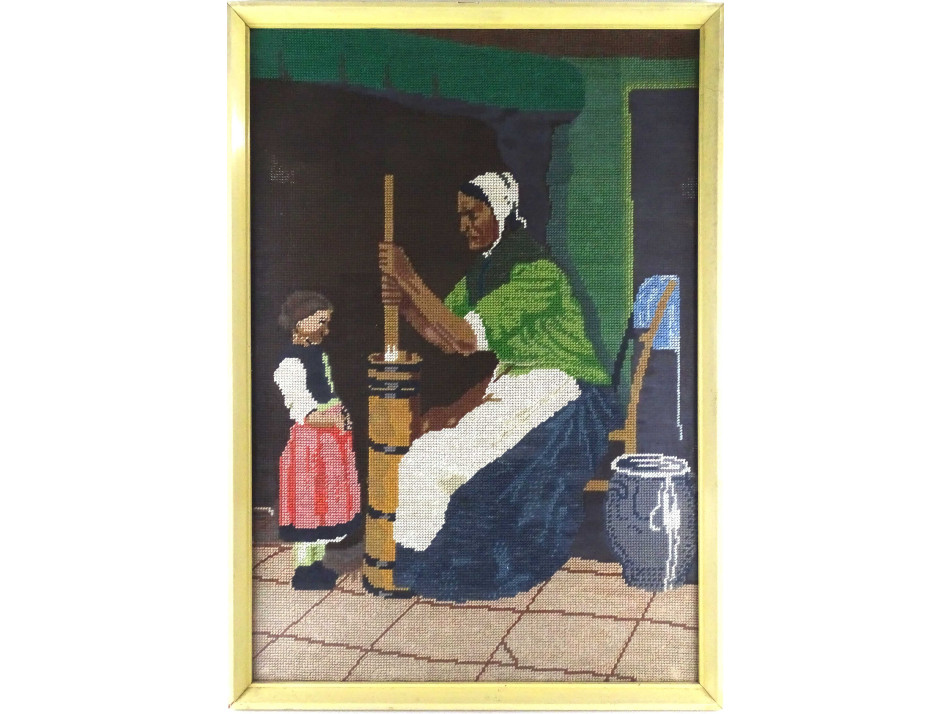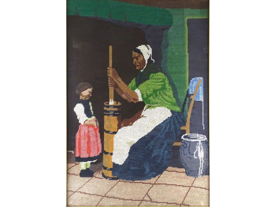 Munkácsy Mihály festménye után Vajköpülés - régi nagyméretű gobelin falikép 66 x 46 cm