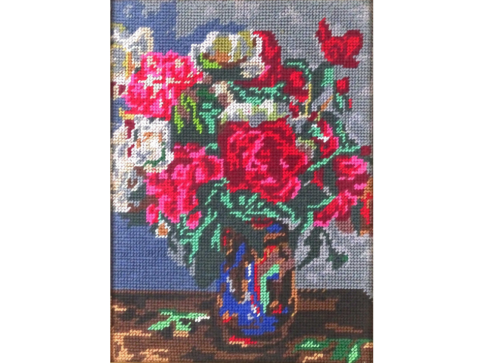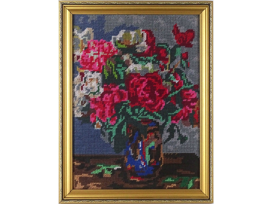 Keretezett virágcsendélet gobelin falikép 33.5 x 25.5 cm