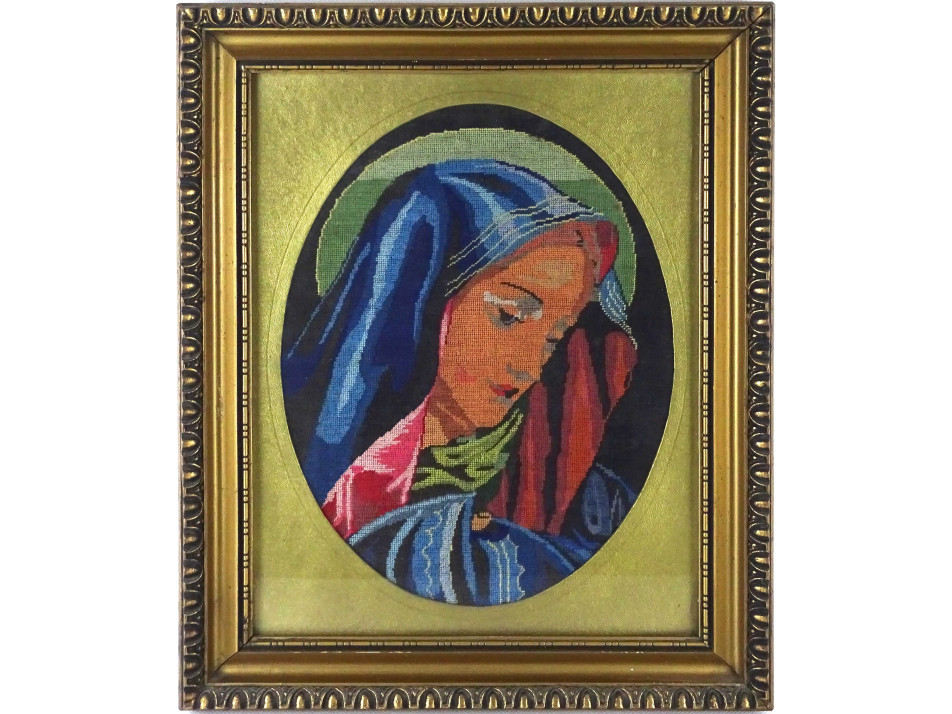 Szűz Mária tűgobelin szentkép keretben 42 x 34 cm
