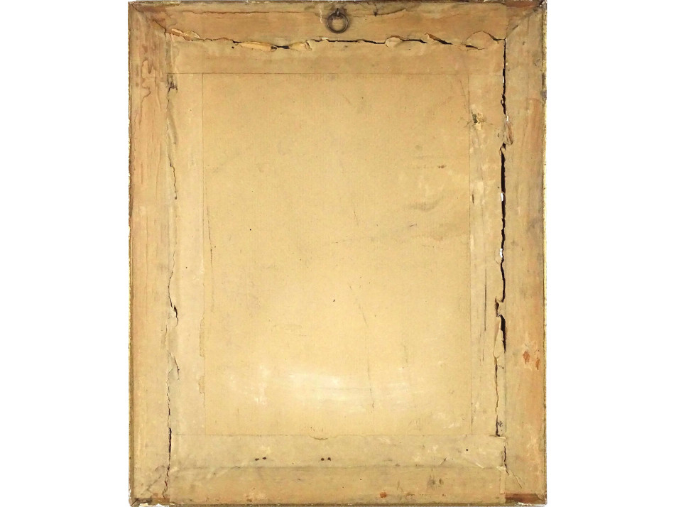 Régi, arany színű paszpartuban található, gyönyörű, ovális alakú kézimunka, vallási témájú szentkép, Szűz Mária portré, üveglap mögött, szép állapotú aranyozott keretben. Akasztási lehetőséggel rendelkezik.