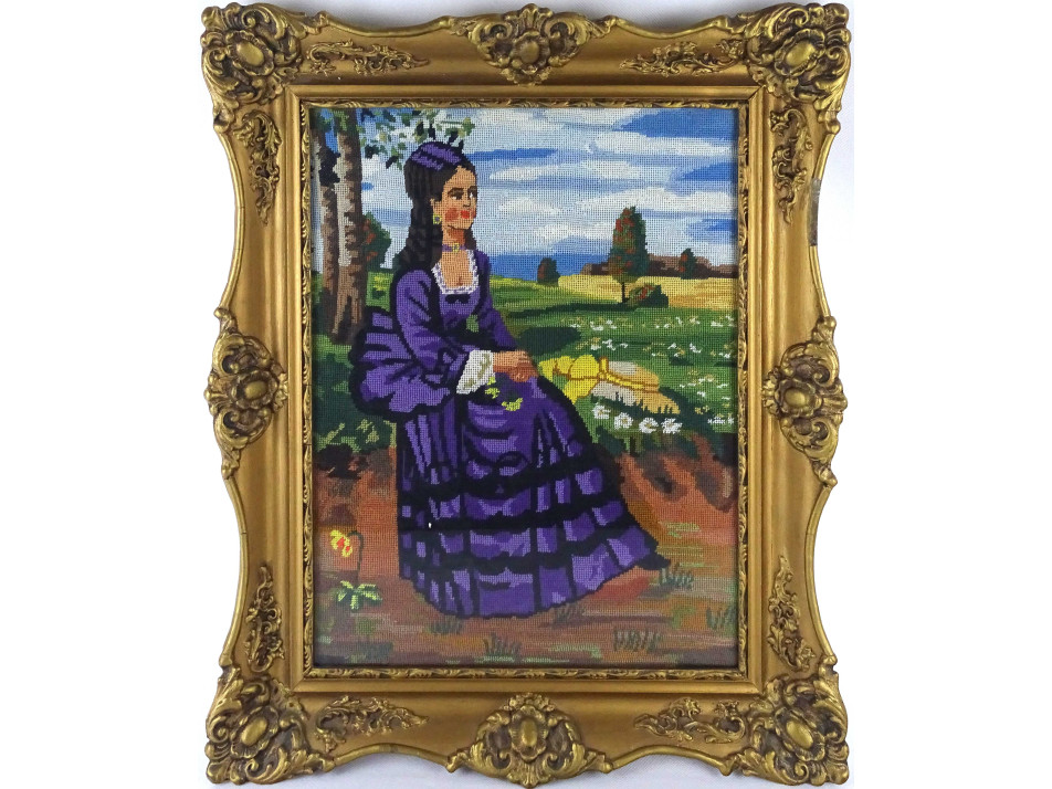 Szinyei Merse Pál festménye után : Lila ruhás nő - régi gobelin falikép blondel keretben