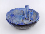 Retro jelzett csorgatott kék mázas kerámia ikebana tál 24.5