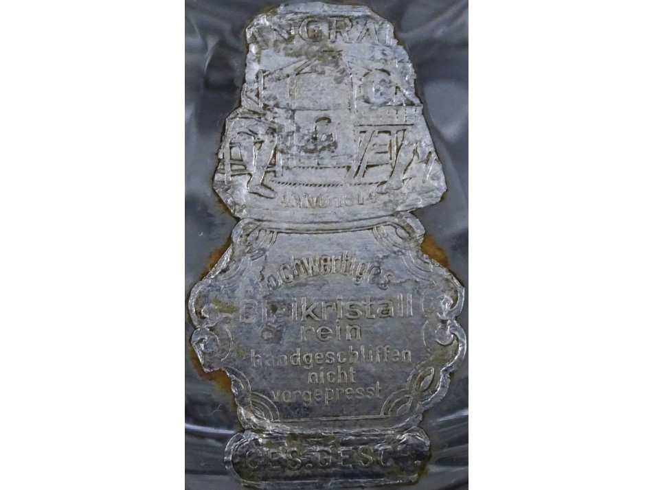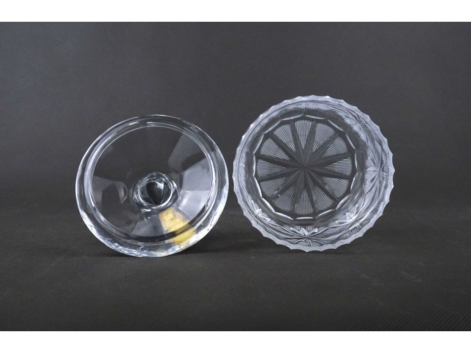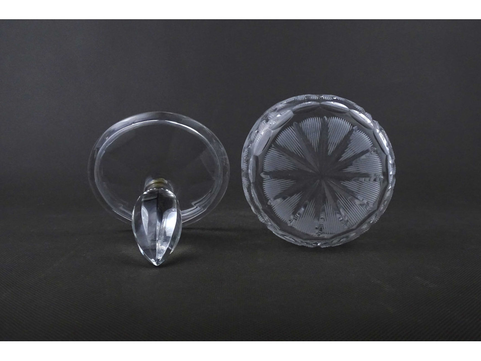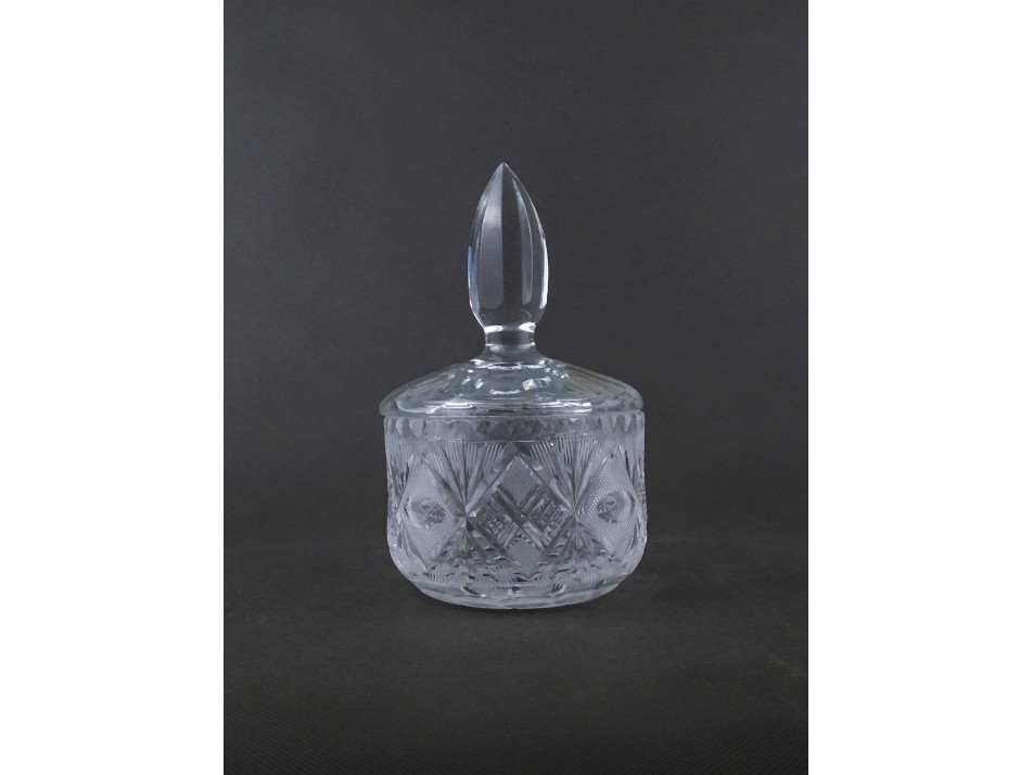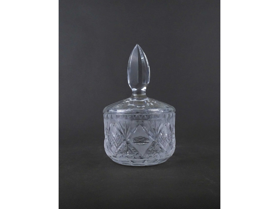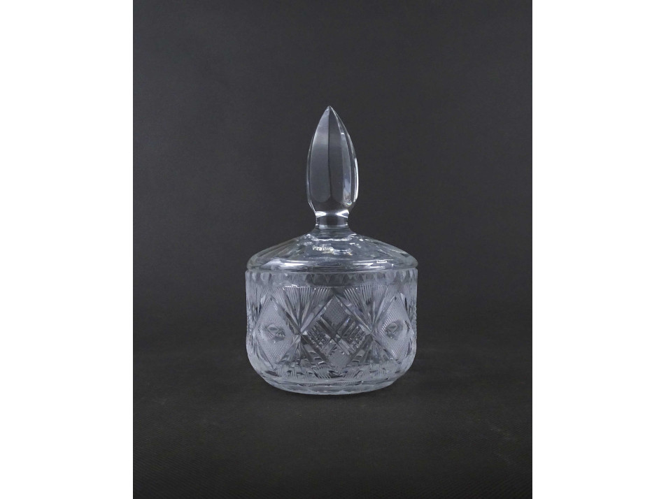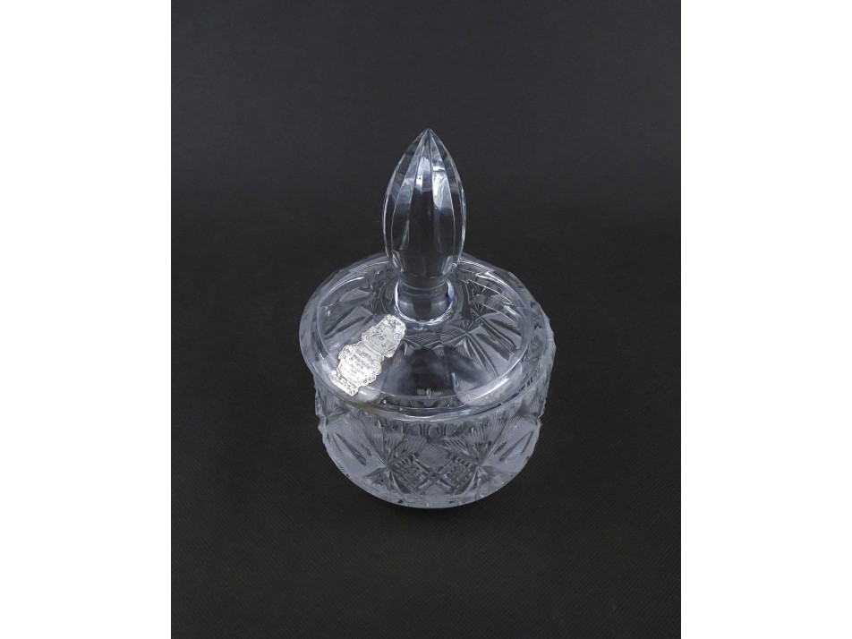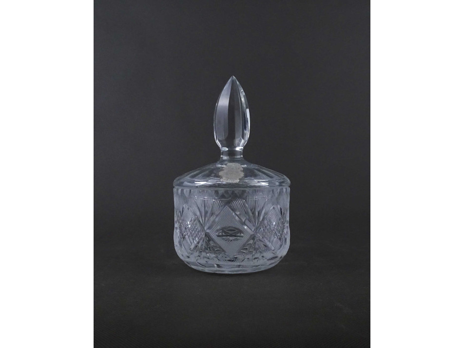 Régi gazdagon csiszolt jelzett ólomkristály bonbonier 10.5 cm