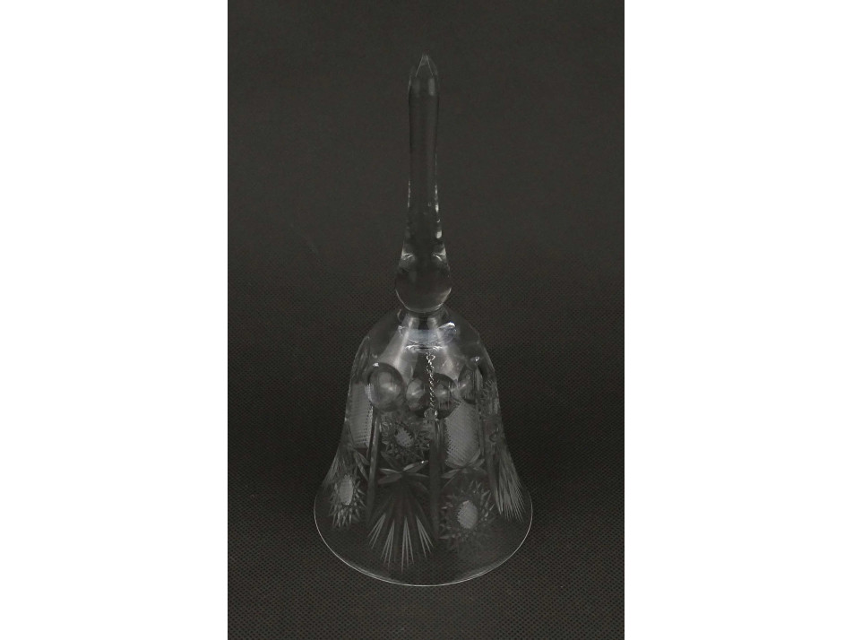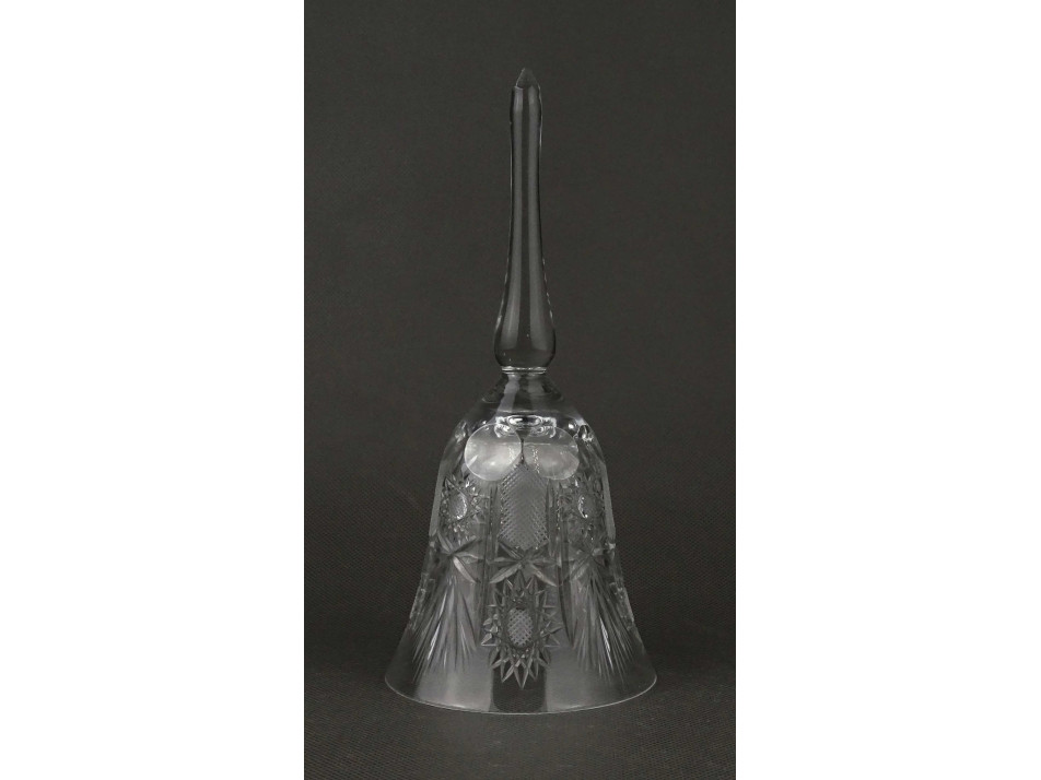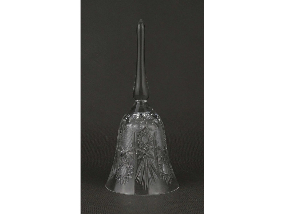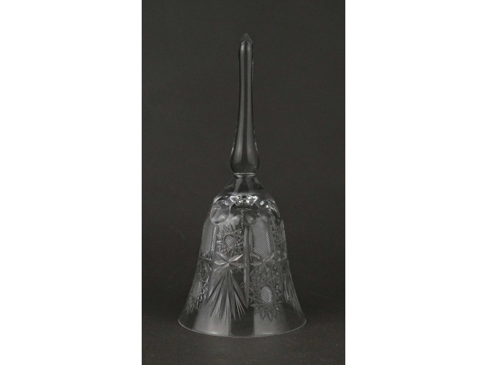 Hibátlan állapotú, csiszolatokkal díszített kristály csengő, inashívó csengettyű.