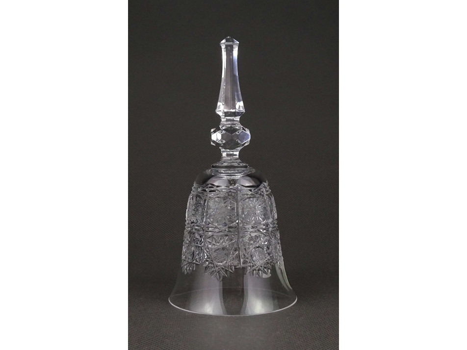 Hibátlan állapotú, jelzett, csiszolatokkal díszített kristály csengő, inashívó csengettyű.