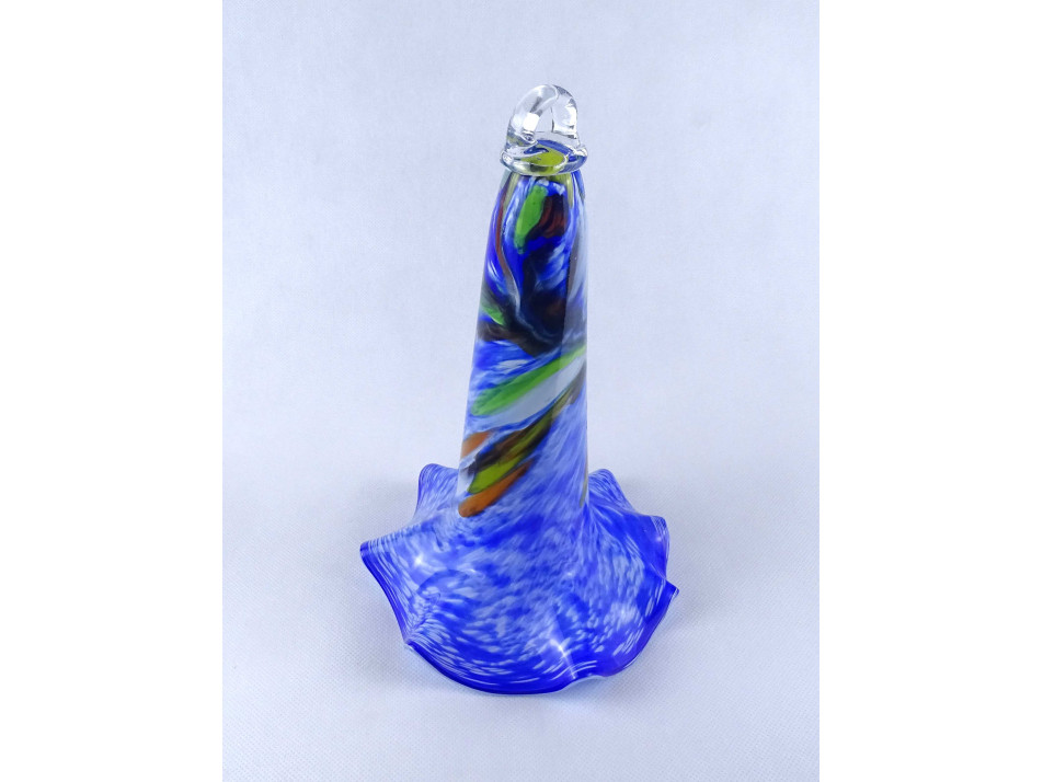 Hibátlan állapotú, különleges, lámpabúrára emlékeztető formájú, színes muranoi fújtüveg, művészi üveg, kézműves design üveg dísztárgy, függő.