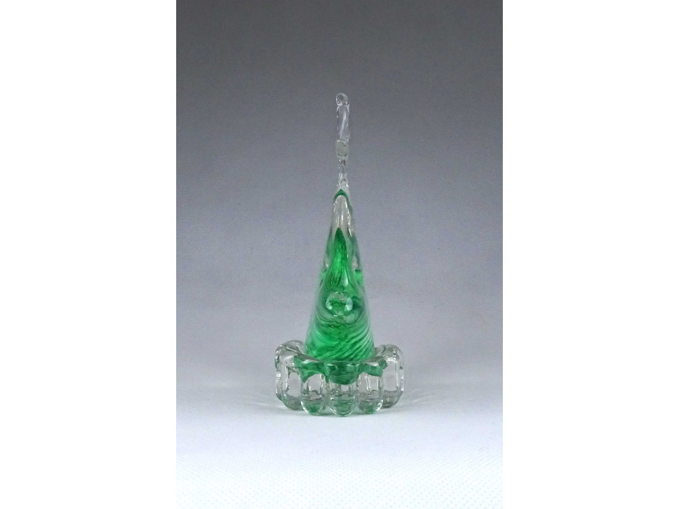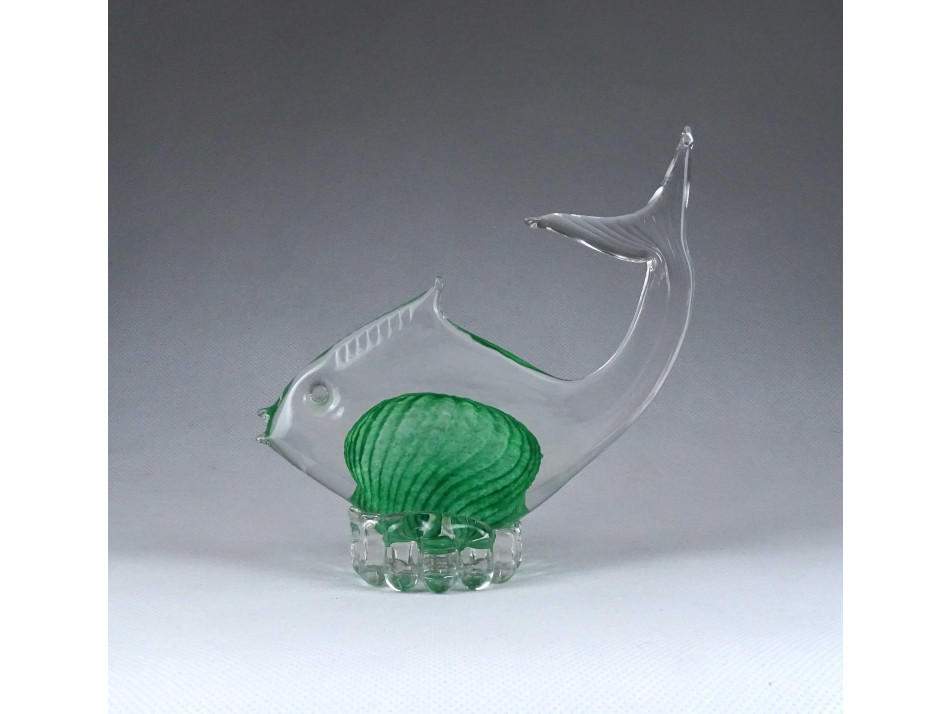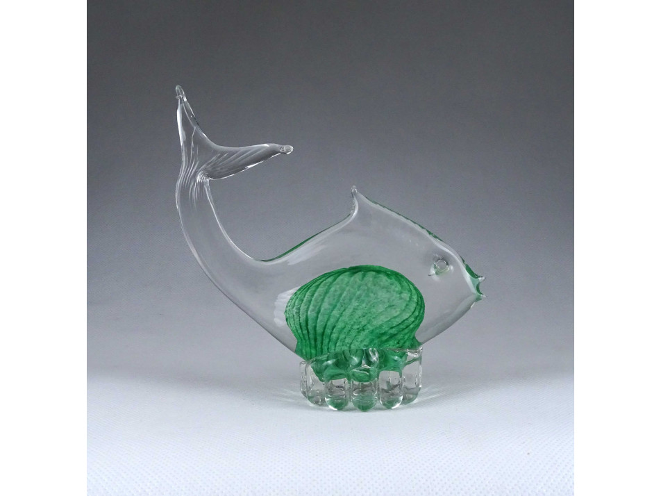 Hibátlan állapotú, zöld fújt üveg hal, díszhal, design üveg tárgy. JOSKA BODENMAIS WALDGLASHÜTTE zöld kristályüveg hal az 1970-es évekből.