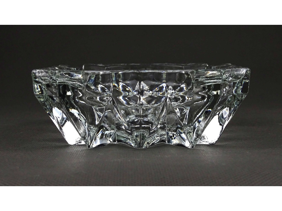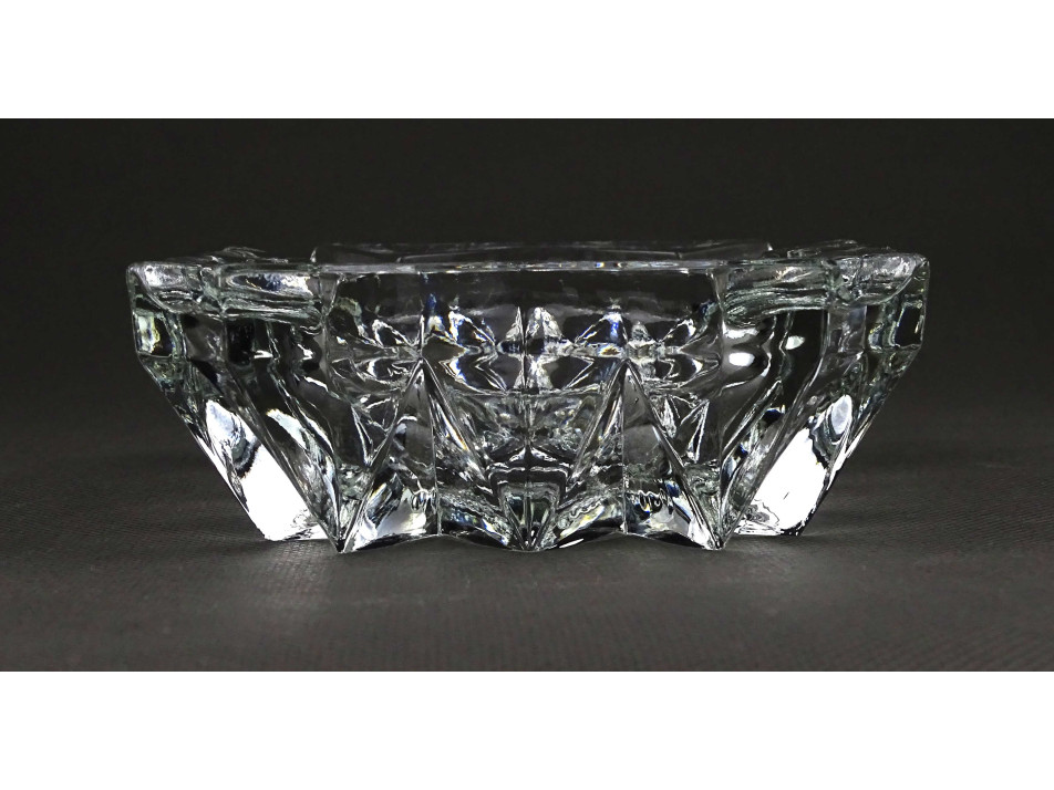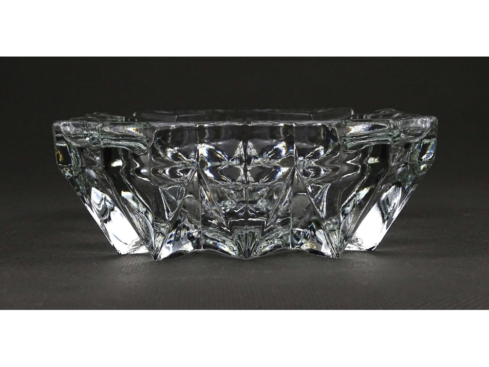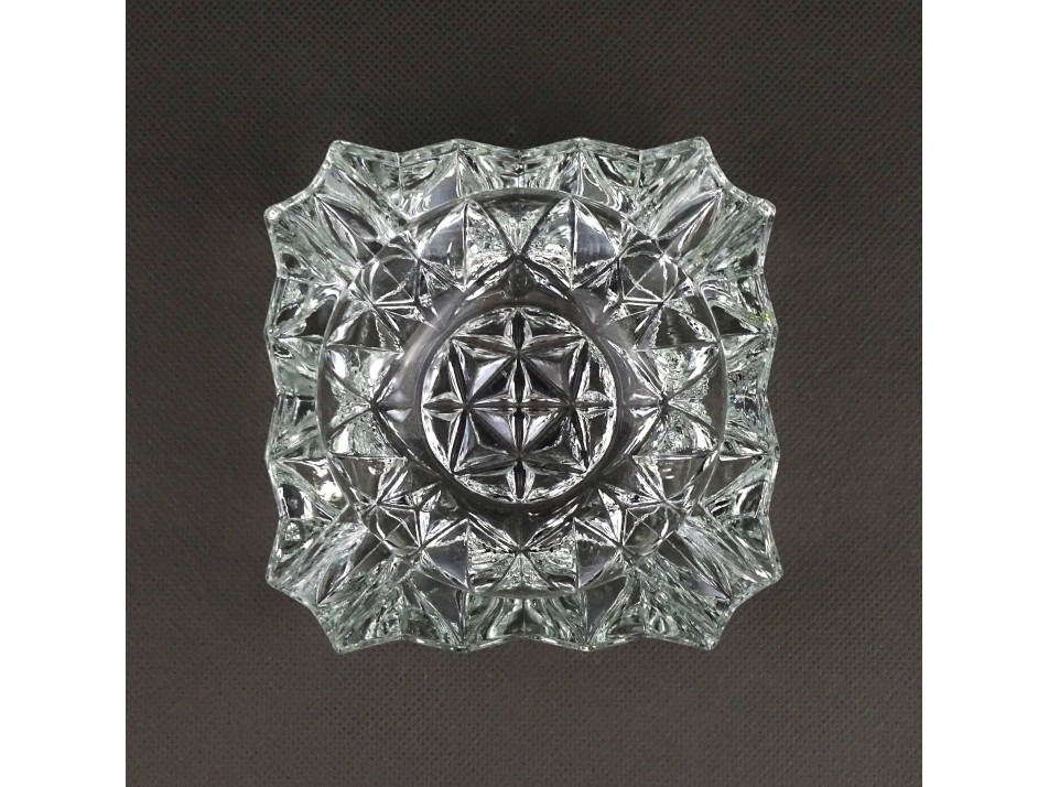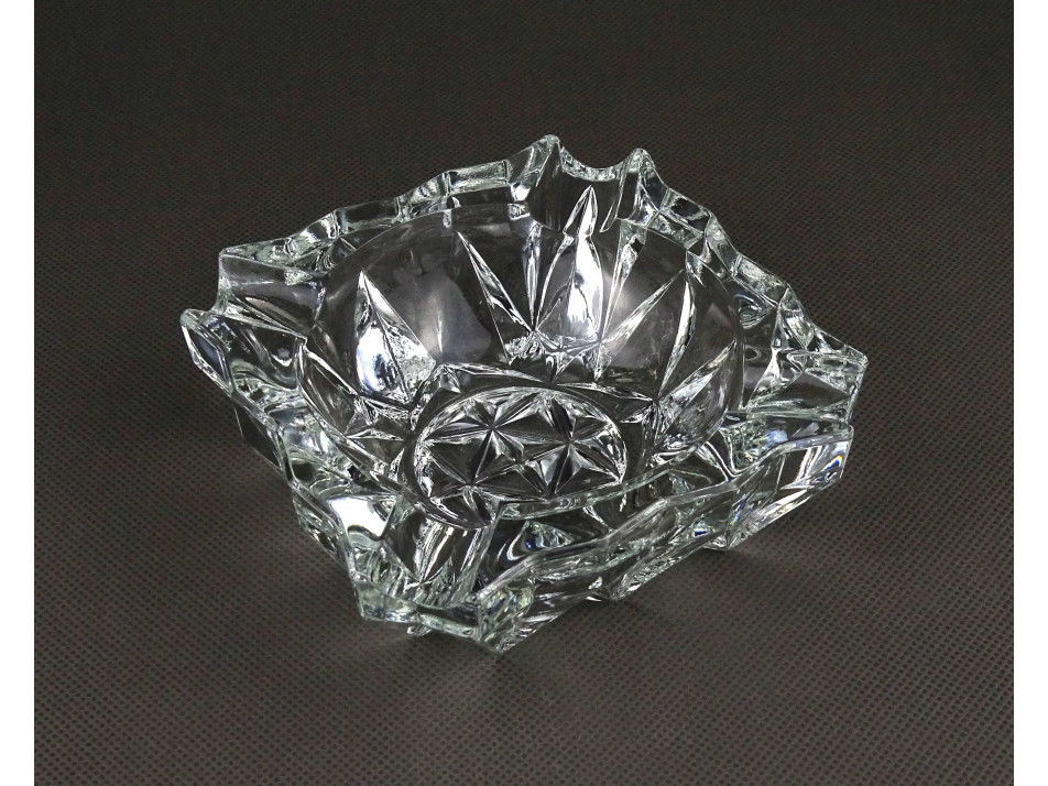 Régi, hibátlan állapotú, vastagfalú, négyszög alakú, négy állásos, látványos csiszolt üveg hamutál, hamutartó.