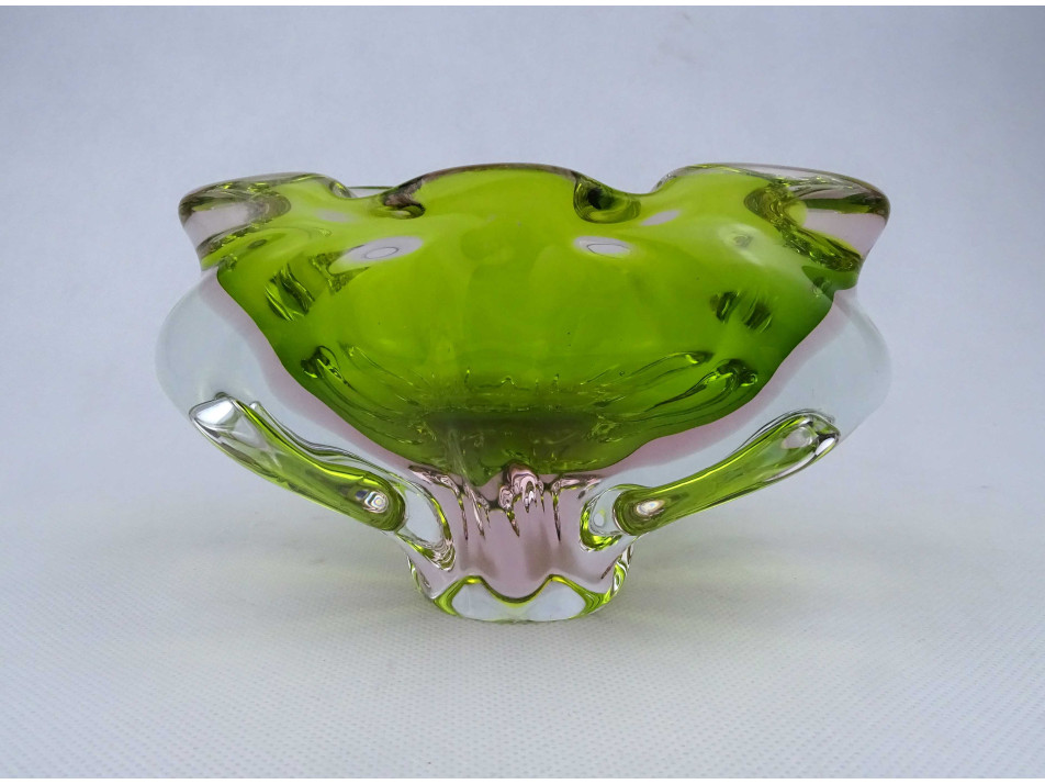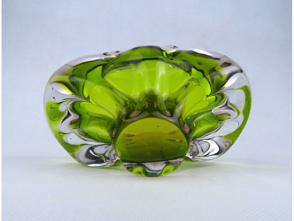 Sárga fújt üveg Josef Hospodka művészi sommerso üveg tál hamutál