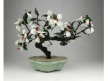 Csiszolt kövekből és üvegből épített bonsai fa 22 cm