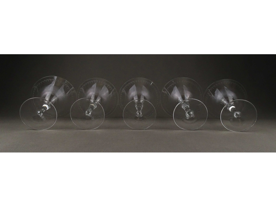 Régi elegáns, spirálmintás, talpas pezsgős pohár készlet 5 darab