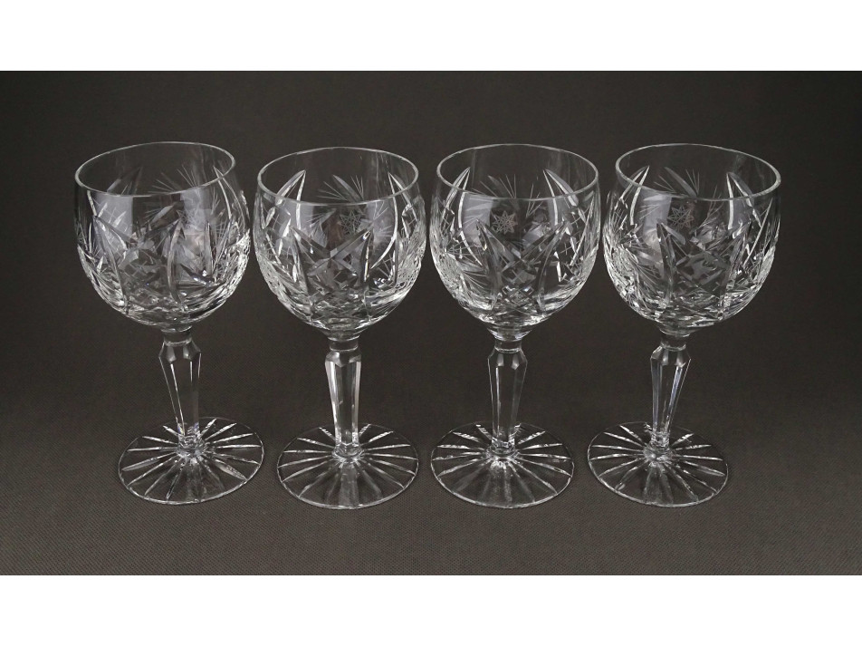 Hibátlan állapotú, elegáns talpas, csiszolt kristály boros pohár készlet, 4 darab.