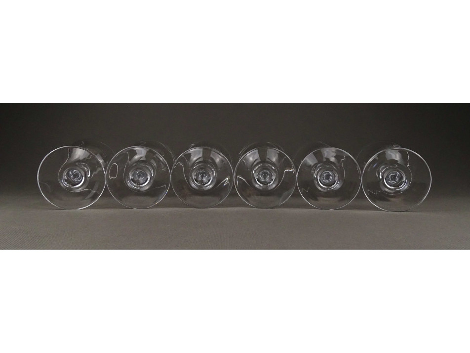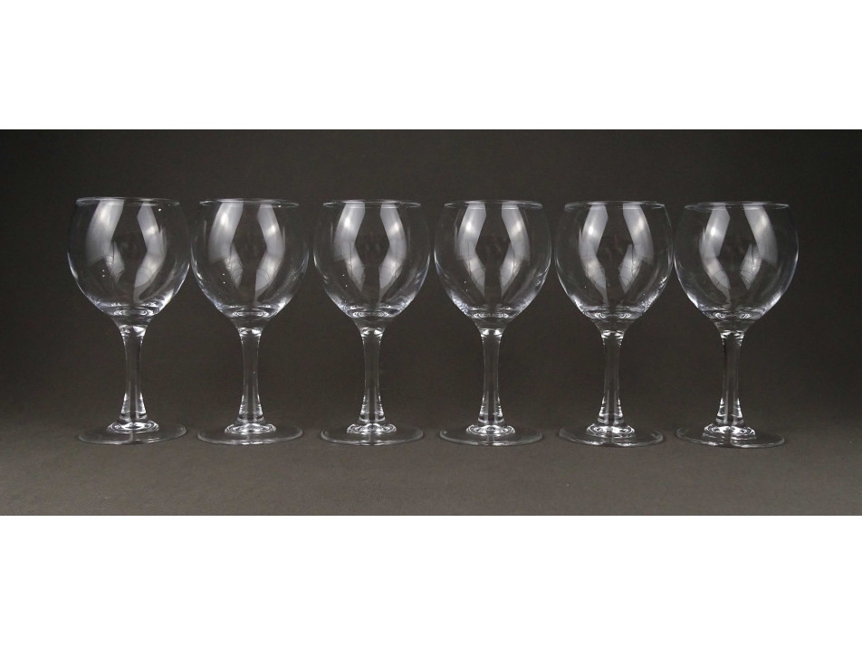 Gyönyörű, elegáns, hibátlan állapotú egyforma talpas üveg pohár, hat darabos borospohár készlet. Talpán felirat: ARC FRANCE