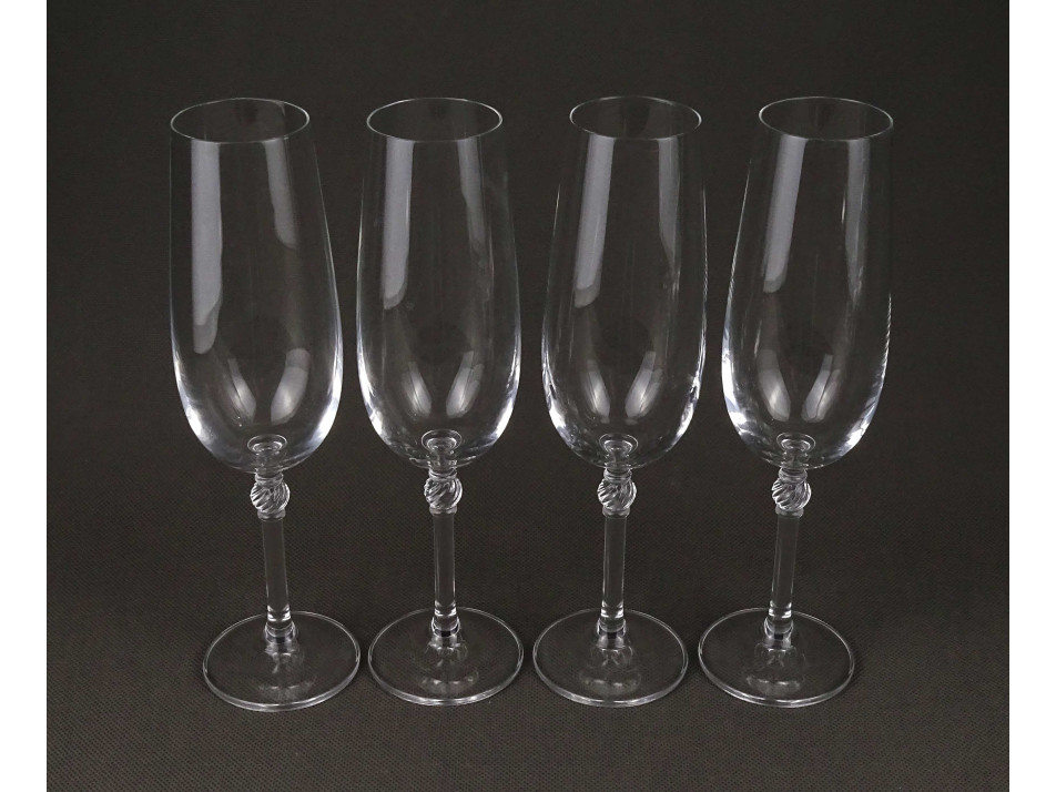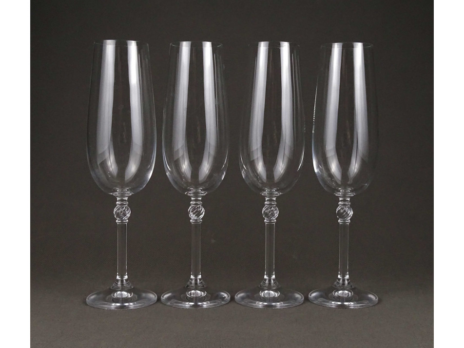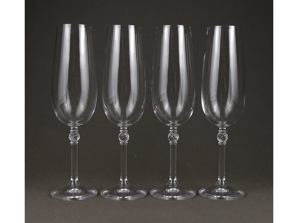 Hibátlan állapotú, elegáns, magas, talpas üveg pezsgőspohár készlet. 4 darab.