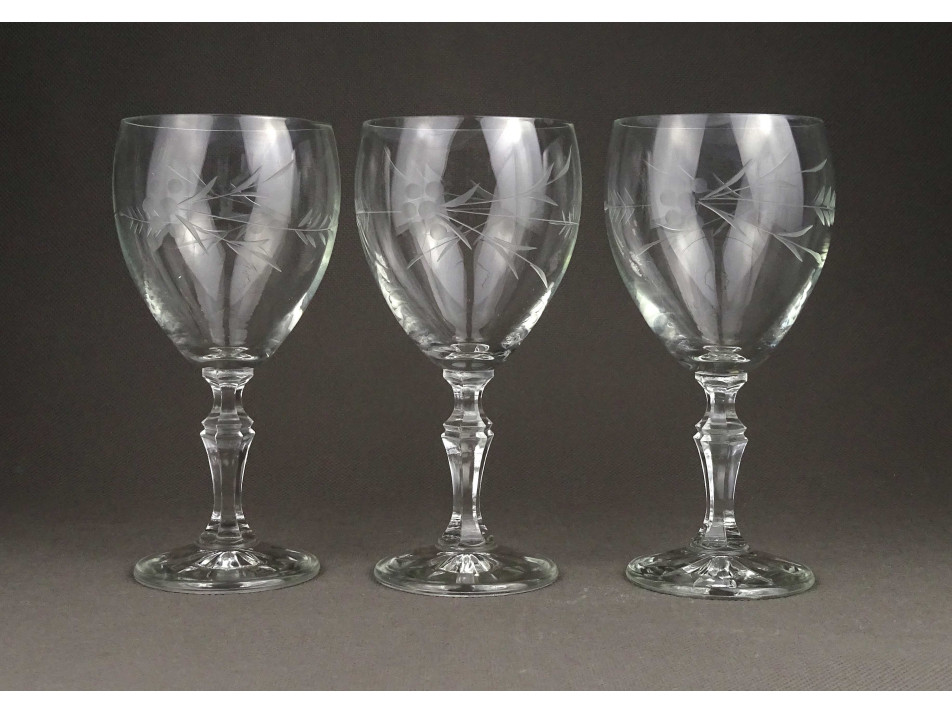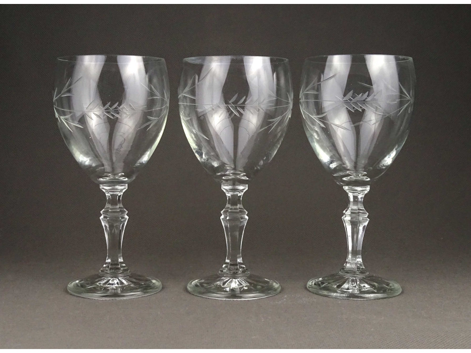 Hibátlan állapotú, elegáns talpas desszertboros üveg pohárkészlet. Oldalán finom csiszolt díszítés látható.