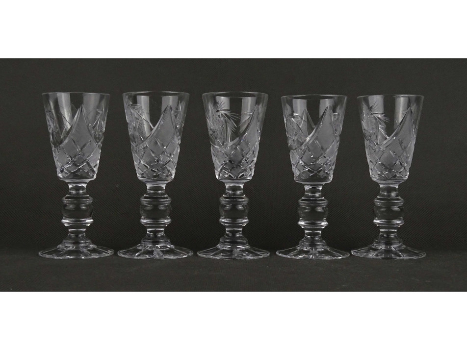 Elegáns talpas csiszolt kristály rövid italos pohárkészlet 5 darab