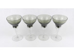 Gyönyörű, elegáns, hibátlan állapotú, hat darabos talpas röviditalos pohár készlet. A poharak oldala csiszolt motívumokkal díszített.