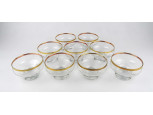 Különleges alakú aranyozott peremű kilenc darabos üvegpohár vagy kehely készlet