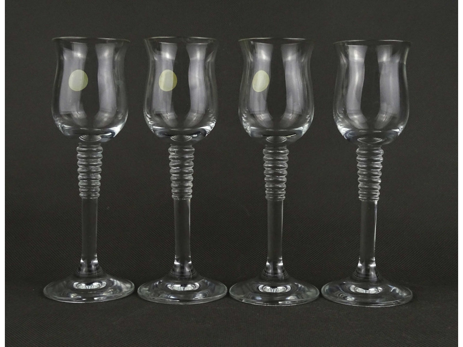Elegáns, Zwiesel Glas talpas pálinkás, röviditalos üveg pohárkészlet, 4 darab. Rajtuk gyártói matrica: ZWIESEL GLAS GERMANY