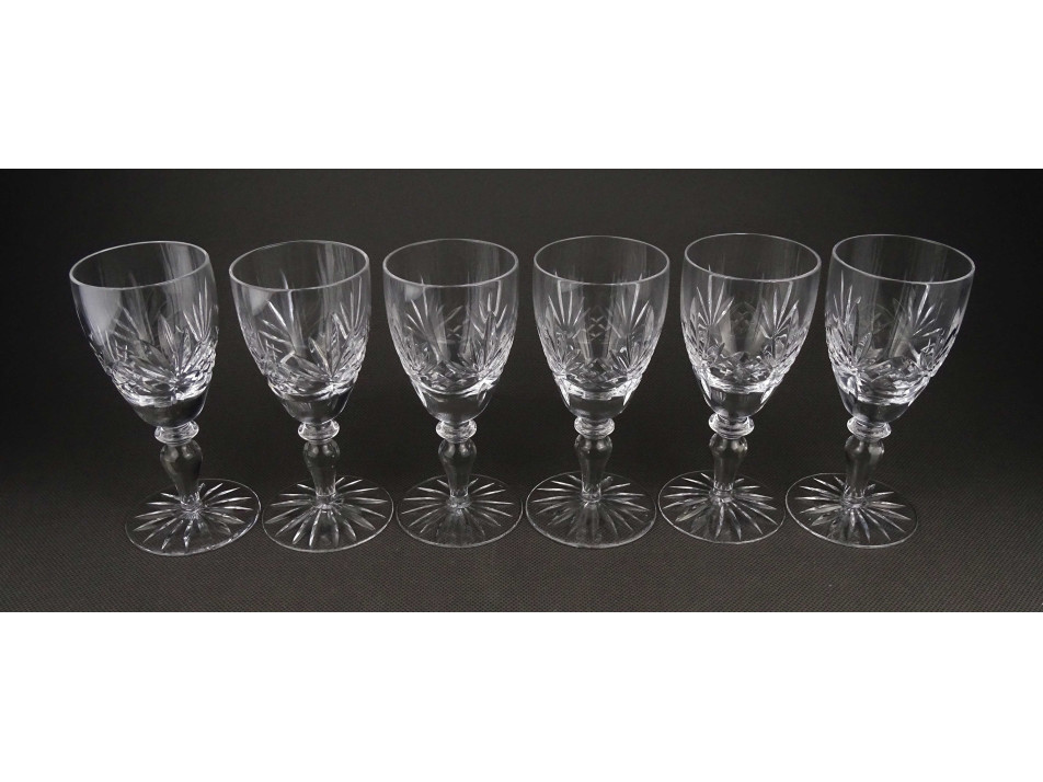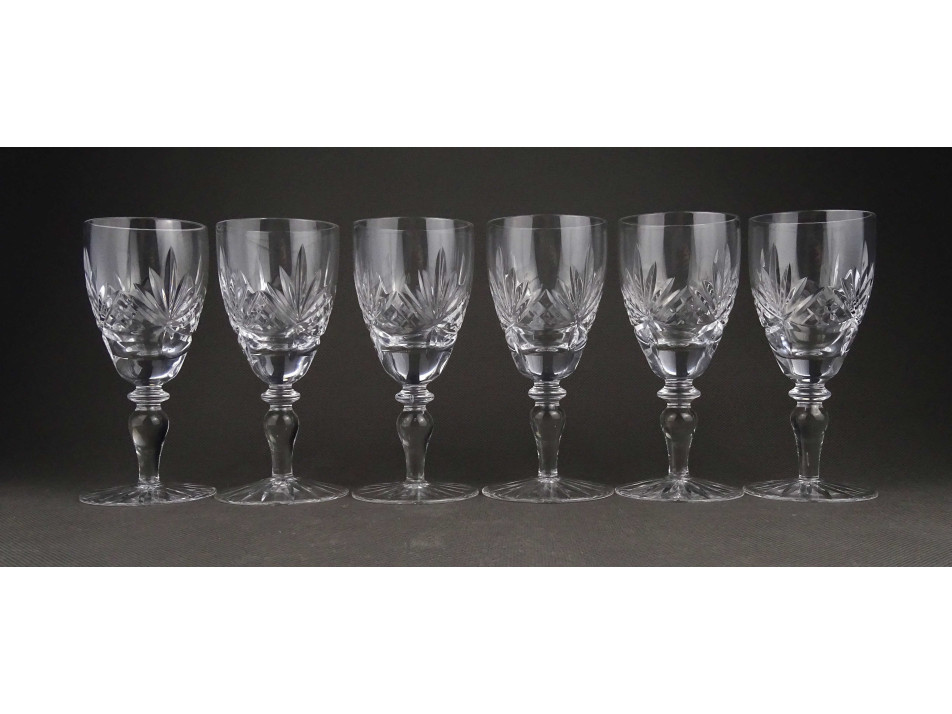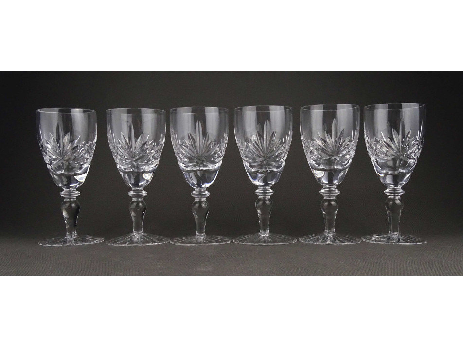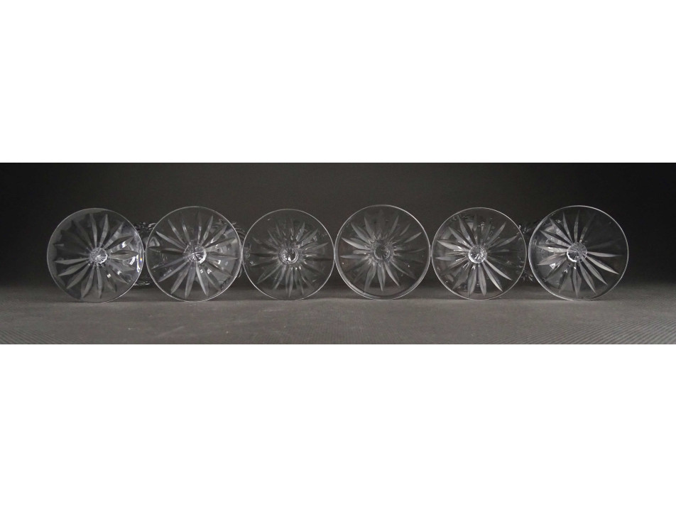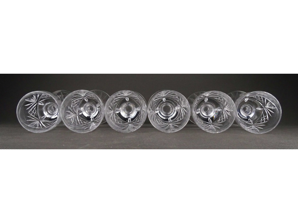 Hibátlan állapotú, talpas csiszolt üveg pohárkészlet. Hat darabos likőrös pohár készlet.