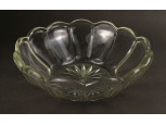 Hibátlan állapotú, hullámos szélű, virágmotívumokkal díszített üveg kínálótál, asztalközép kínáló és hozzá tartozó kínáló tálca.