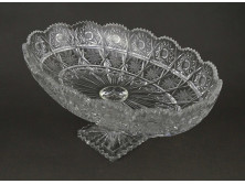 Régi, hibátlan állapotú, három lábon álló, csiszolatokkal díszített, öblös, magasfalú asztalközép, kínáló tál, gyümölcskínáló.