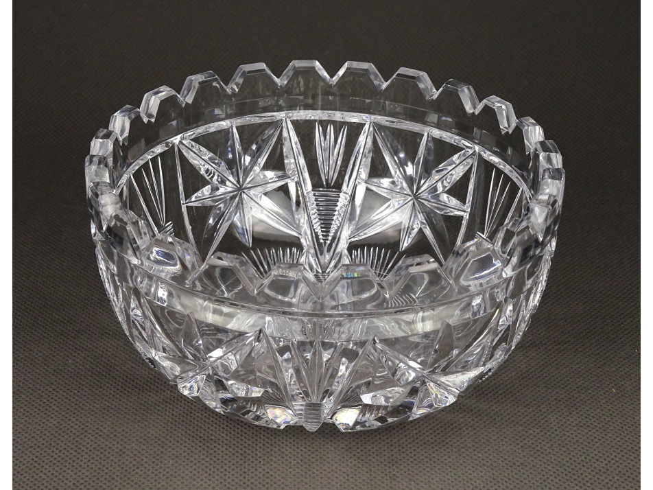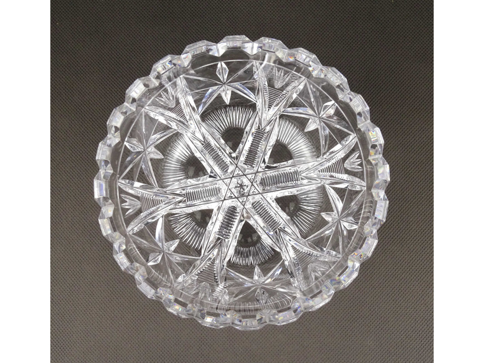Hibátlan állapotú, csiszolatokkal díszített, vastag falú kristály tálka, asztalközép, kínáló tál.