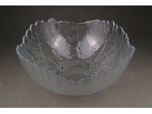 Hibátlan állapotú, vastag falú, művészi üveg, cseh fújt üveg asztalközép kínáló tál, dísztál a XX. század második feléből.