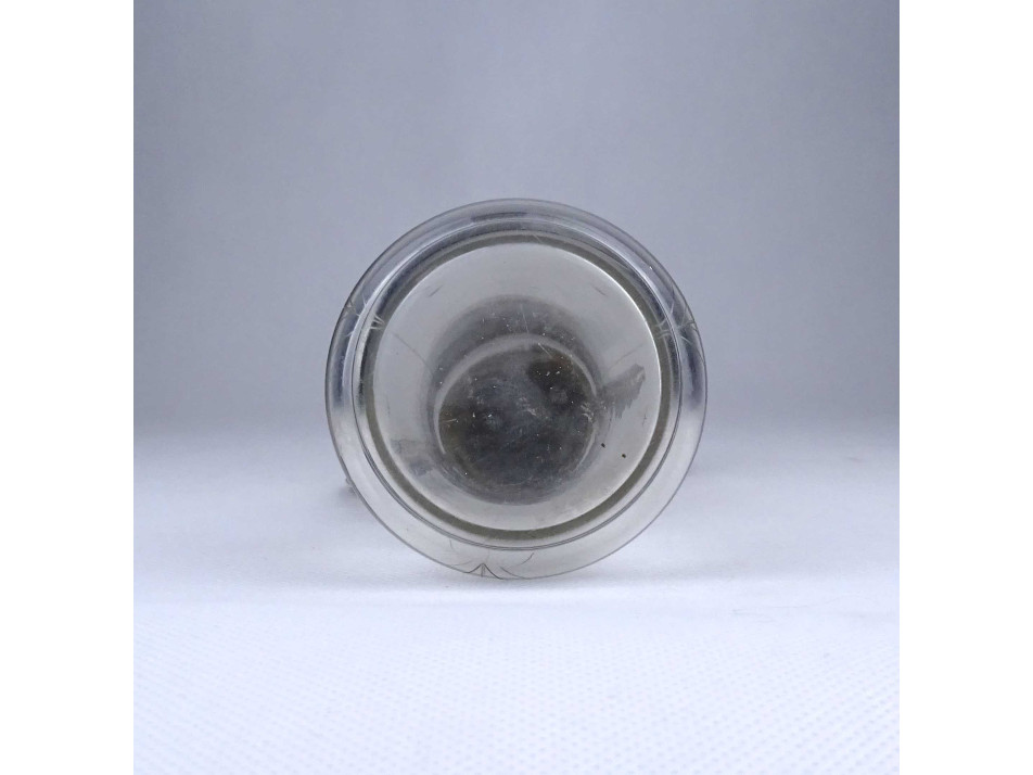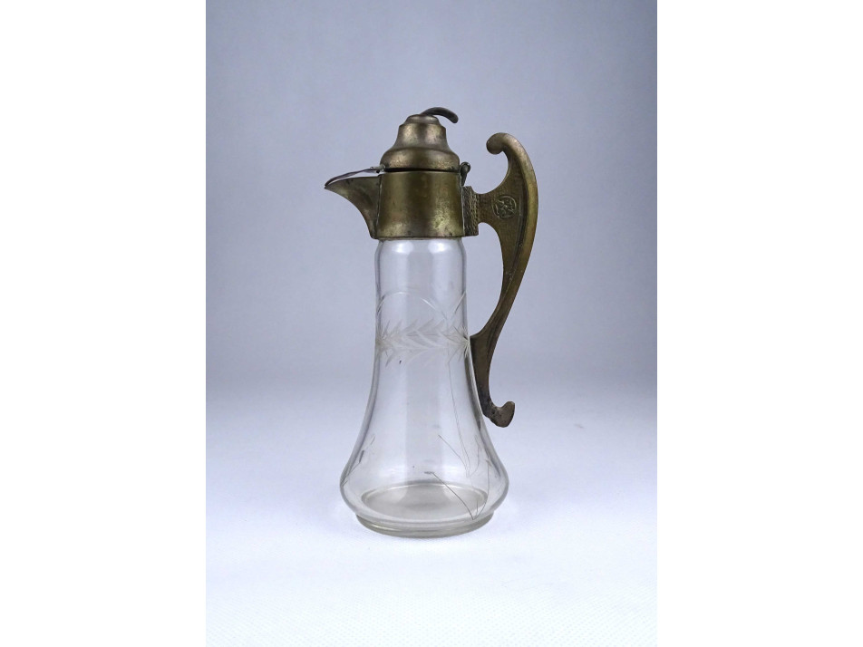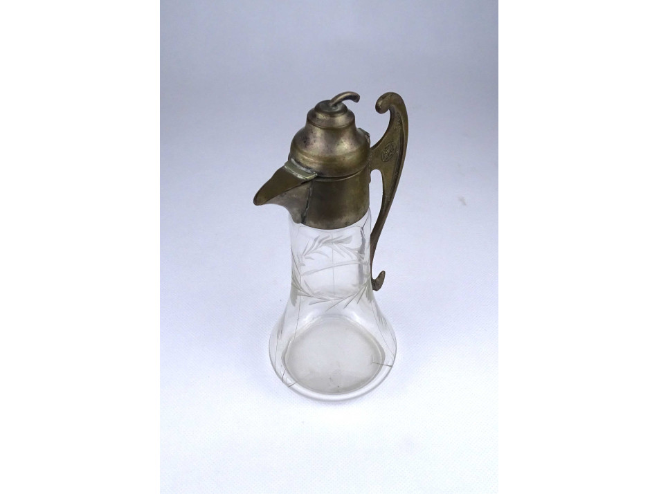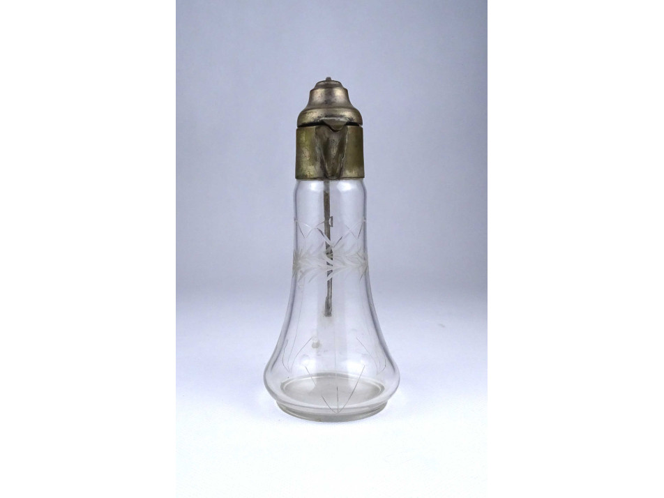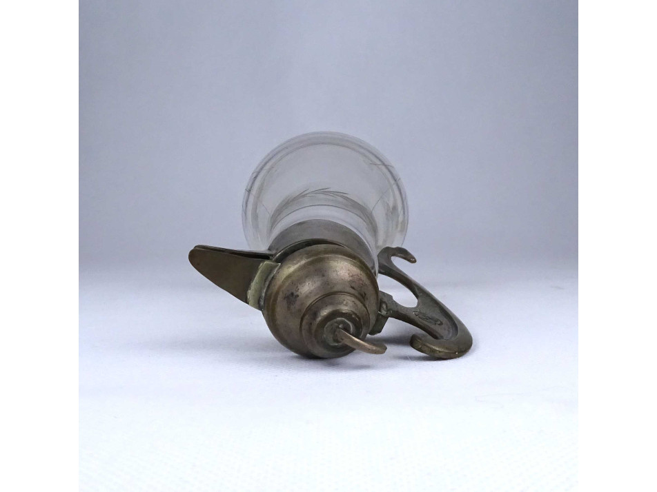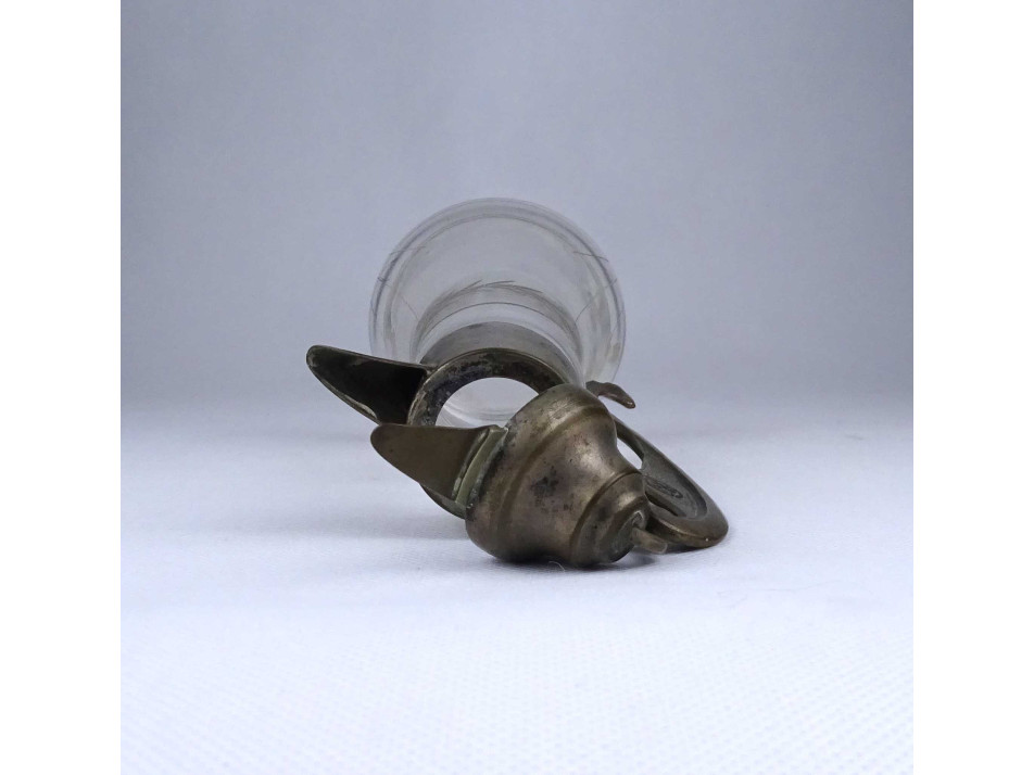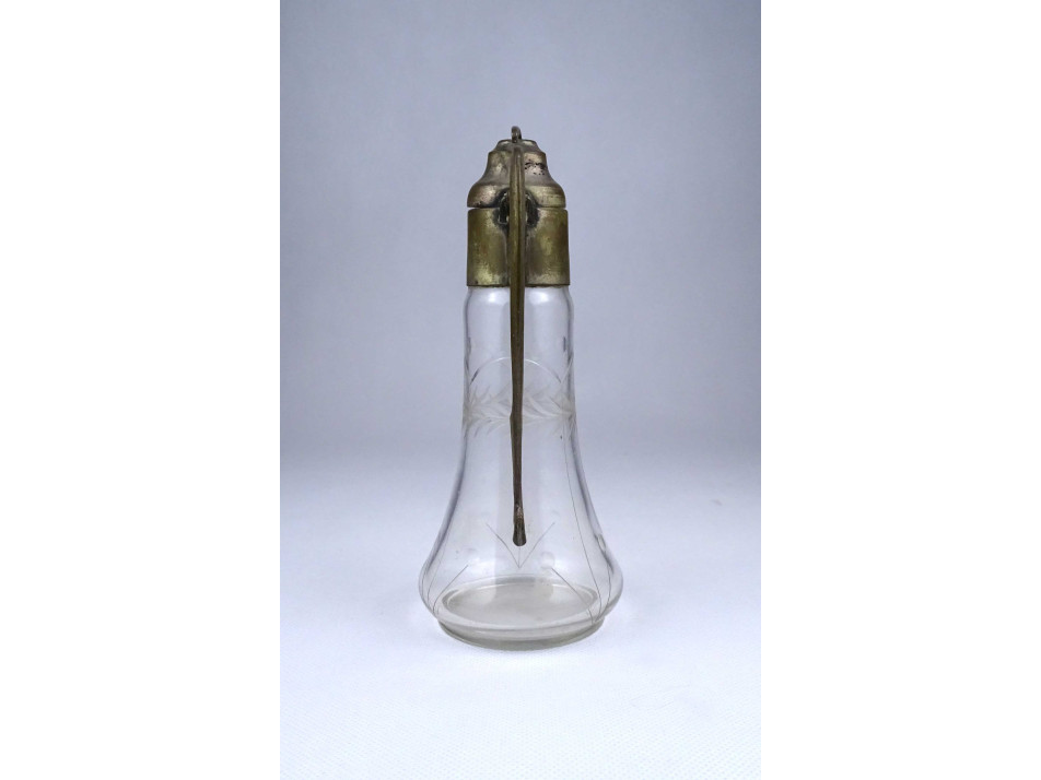 Antik csiszolt üveg asztali kiöntő ezüstözött réz felső résszel és füllel 19.3 cm