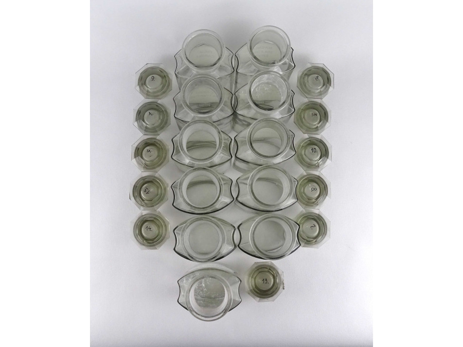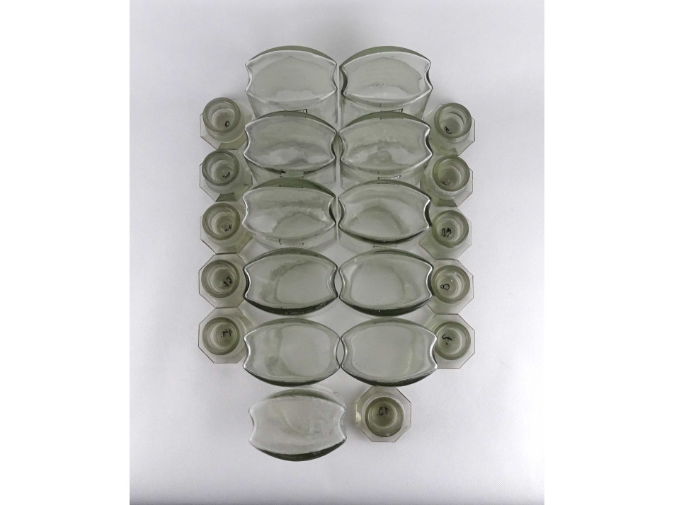 Régi nagyméretű gyógyszertári patika üveg csomag 11 darab tégely 18 cm