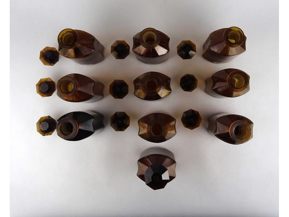 Régi nagyméretű barna színű gyógyszertári patika üveg csomag 10 darab tégely 16.2 cm