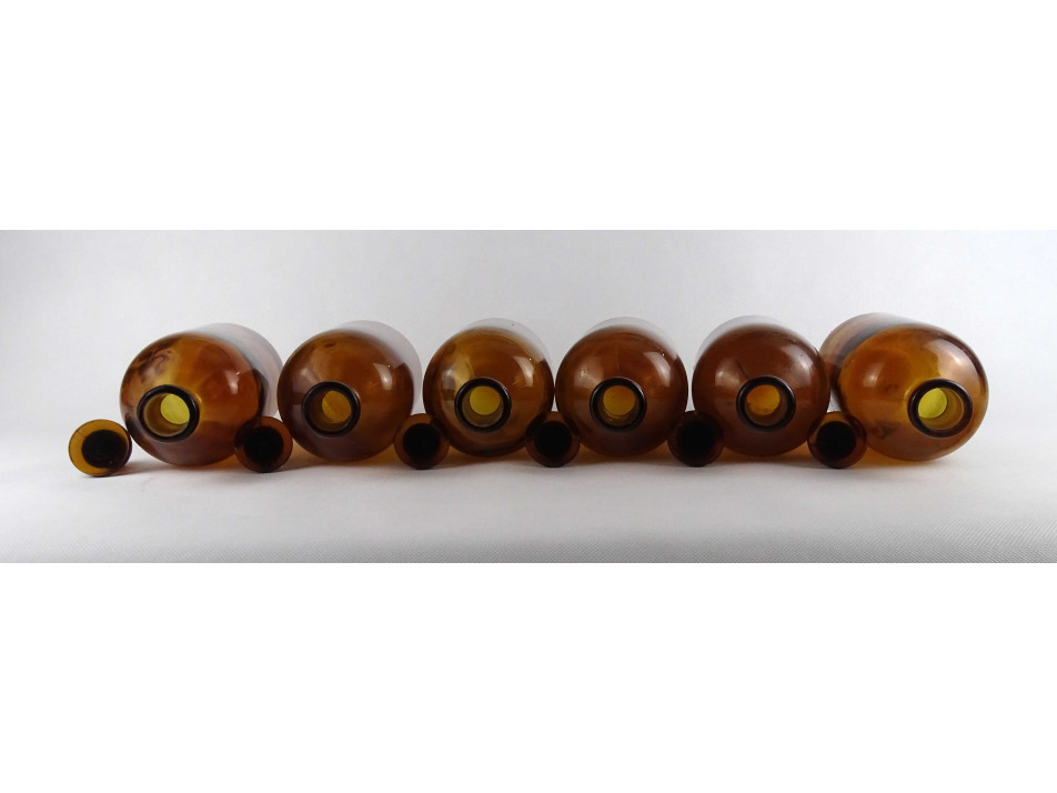 Régi nagyméretű barna gyógyszertári patika üveg palack csomag 6 darab 22.5 cm
