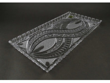 Szép állapotú, ovális alakú asztali kínáló tál, tálka. Gyűrűtartó vagy cukorkínáló tál. Oldala csiszolatokkal díszített.